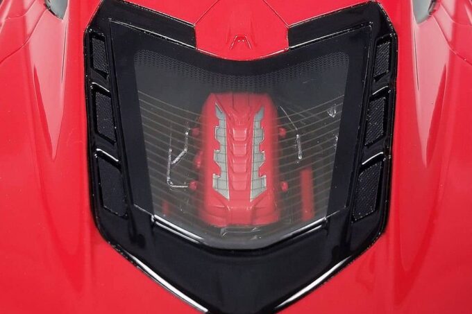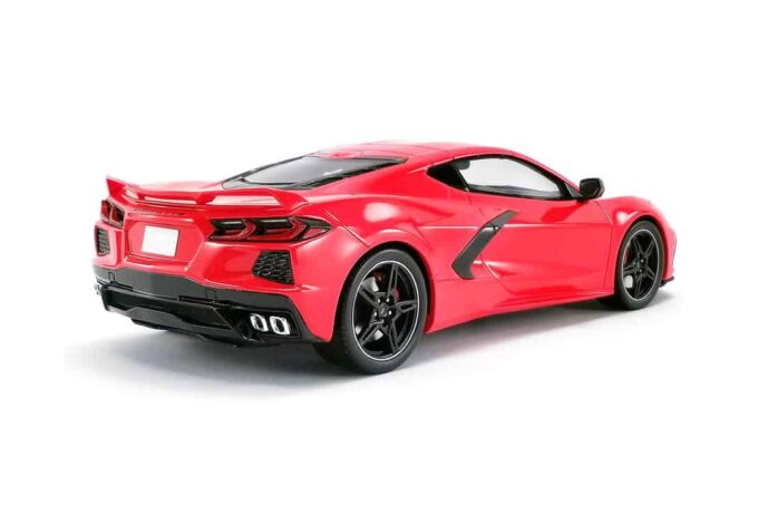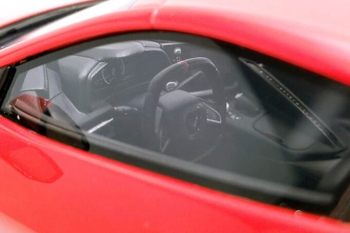 The new Chevrolet Corvette C8 is here reproduced in red version by the manufacturer GT Spirit. This 1:18 scale model is modeled to perfection in a special edition produced in a limited and numbered quantity.