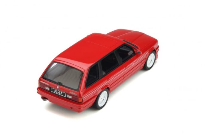 This high-end resin model from OttOmobile perfectly reproduces the Alpina B3 2.7 Touring (BMW E30) in a stunning Brillant Red color. This model car is produced in 4000 numbered copies.