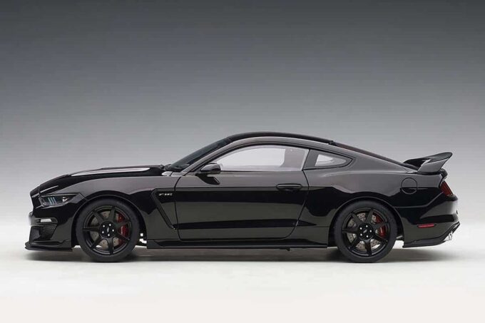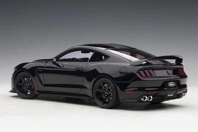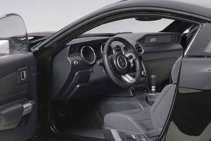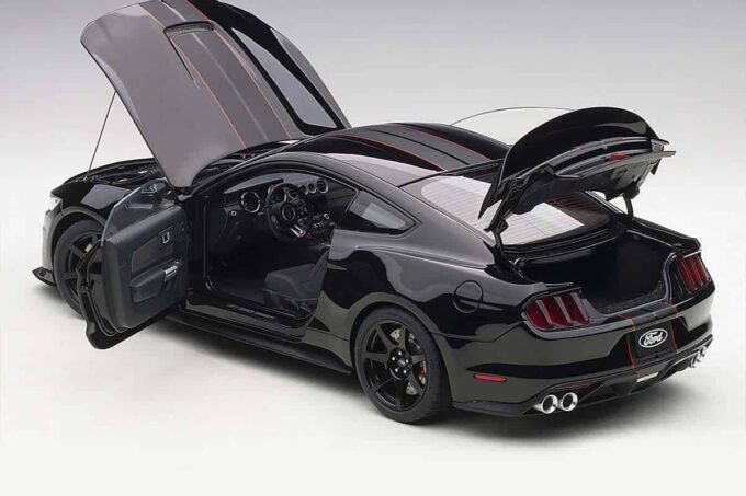 This Ford Mustang Shelby GT350R is reproduced in black at 1:18 scale. It features directional wheels and opening doors, the trunk and the engine are also faithfully modeled. An exceptional model car made by AUTOart.