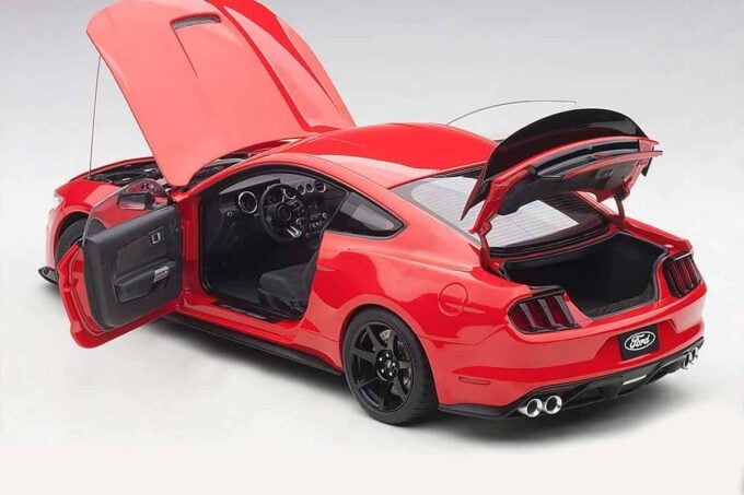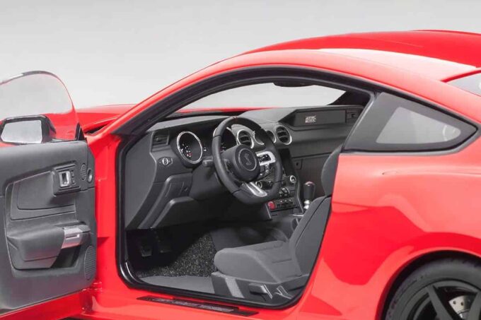 This Ford Mustang Shelby GT350R is reproduced in red at the smallest detail at 1:18 scale: directional wheels and openable parts allows you to admire the cabin, the trunk and the engine faithfully modeled. An exceptional miniature made by AUTOart.