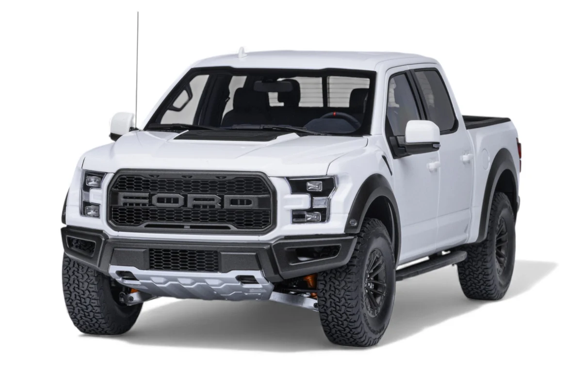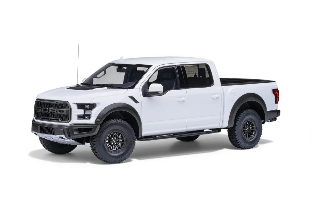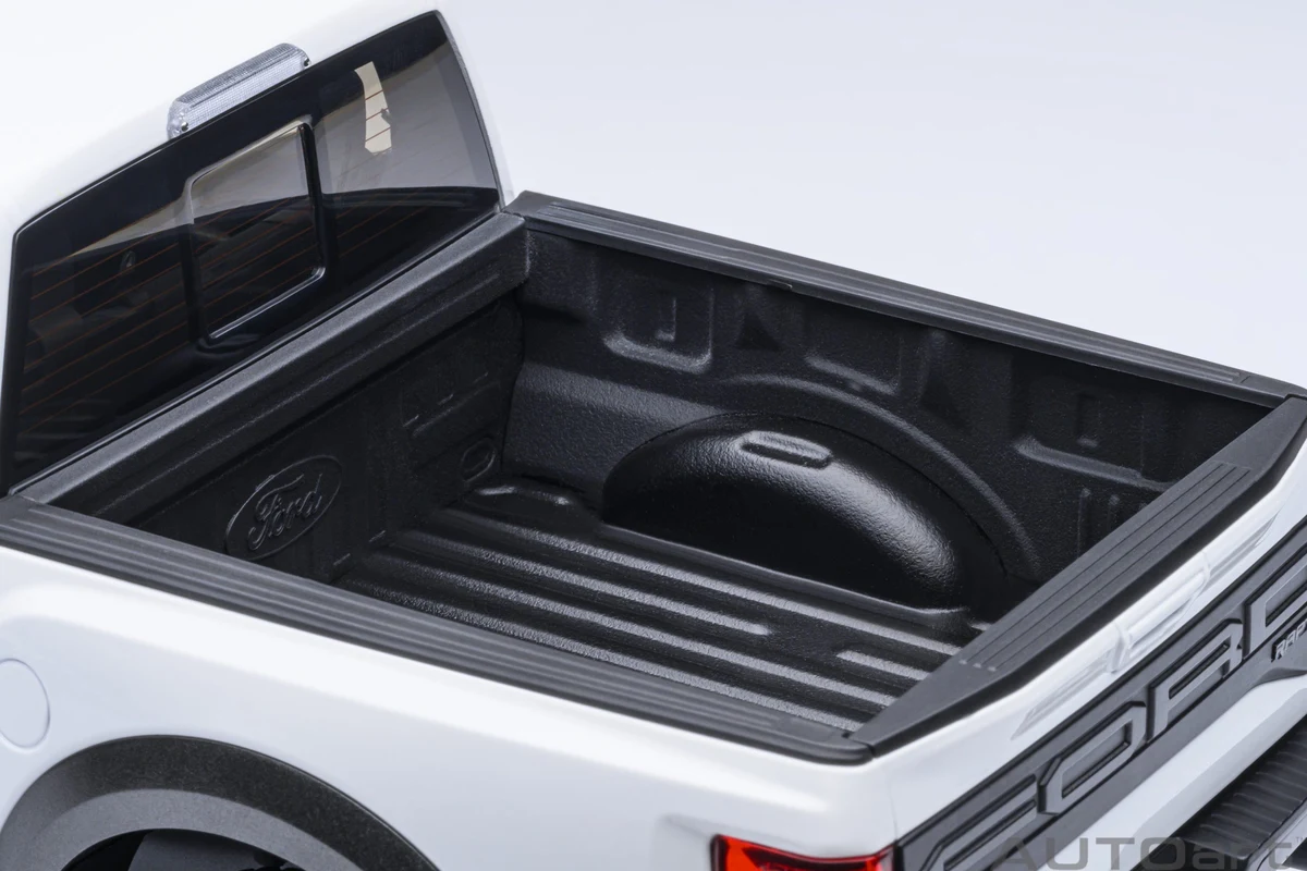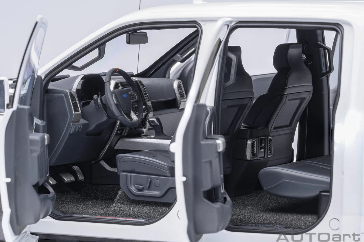 This 1:18 scale miniature reproduces the 2019 Ford F-150 Raptor Supercrew in Oxford White. Crafted by AUTOart in composite with functional opening parts, this model faithfully captures the imposing proportions of the American performance pickup. The 2019 Raptor features a 3.5-liter EcoBoost V6 producing 450 horsepower, launching this behemoth from 0 to 60 mph in just 5.1 seconds.