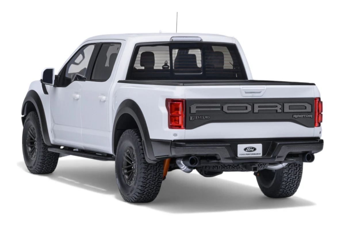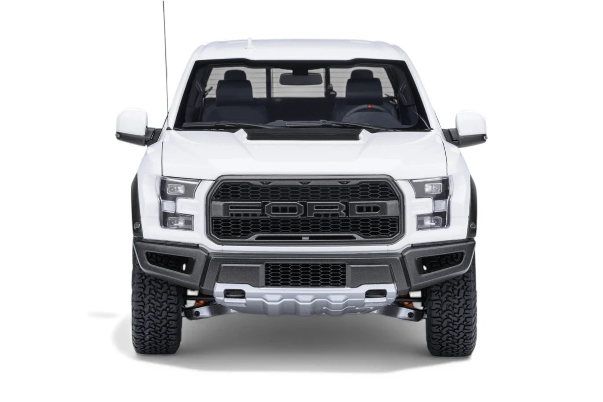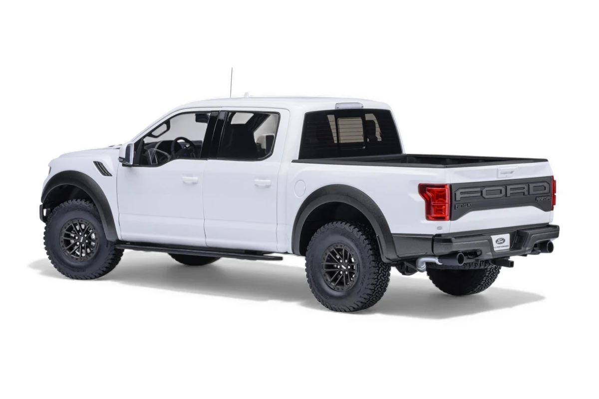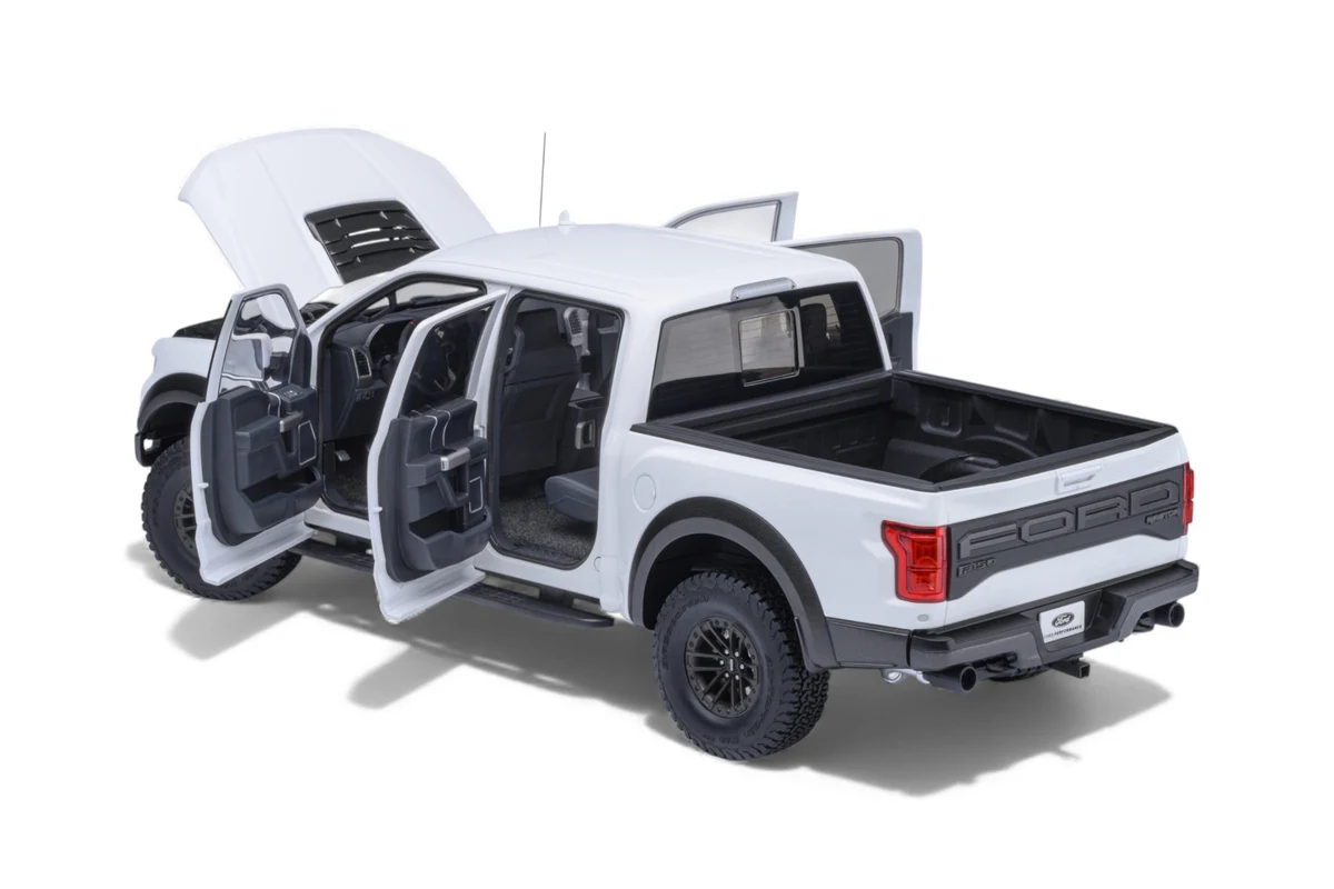 This 1:18 scale miniature reproduces the 2019 Ford F-150 Raptor Supercrew in Oxford White. Crafted by AUTOart in composite with functional opening parts, this model faithfully captures the imposing proportions of the American performance pickup. The 2019 Raptor features a 3.5-liter EcoBoost V6 producing 450 horsepower, launching this behemoth from 0 to 60 mph in just 5.1 seconds.
