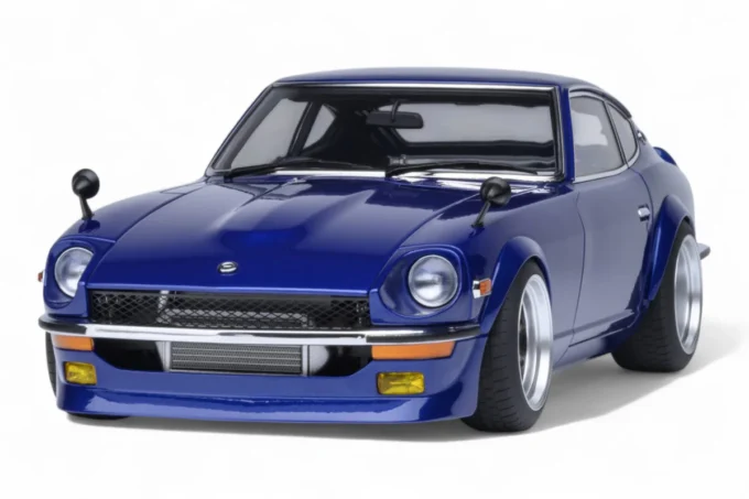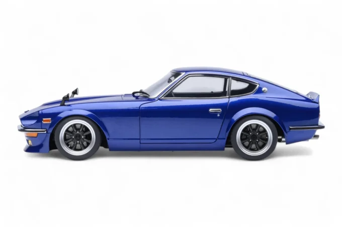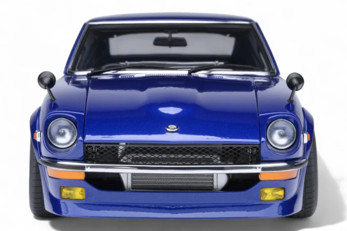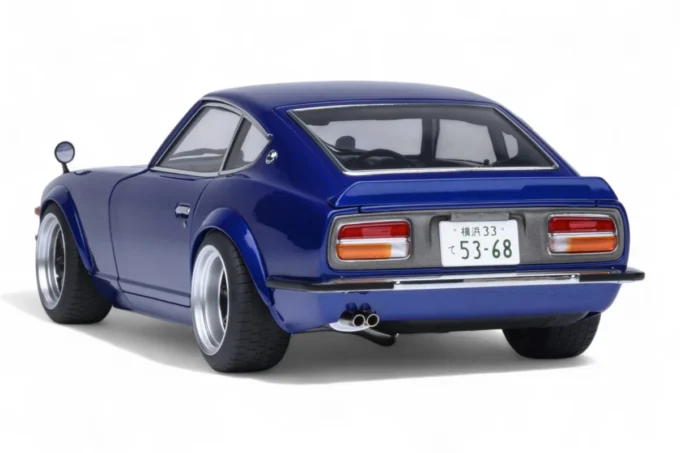 This 1:18 scale Nissan Fairlady Z reproduces the legendary car from the manga Wangan Midnight in its blue hue. Made by AUTOart from composite with openings, it embodies the myth of the Devil Z, this cursed S30 renowned for its supernatural speed on the highways of Tokyo. Equipped with a prepared L28 developing 600 horsepower, this legendary machine has continued to fascinate Japanese street racing enthusiasts for over 30 years.