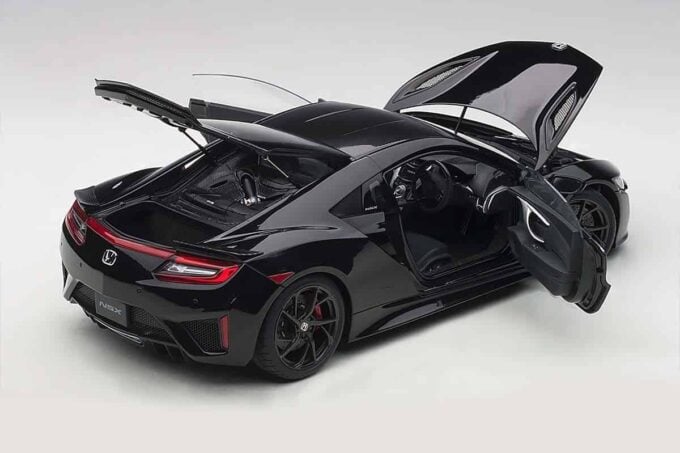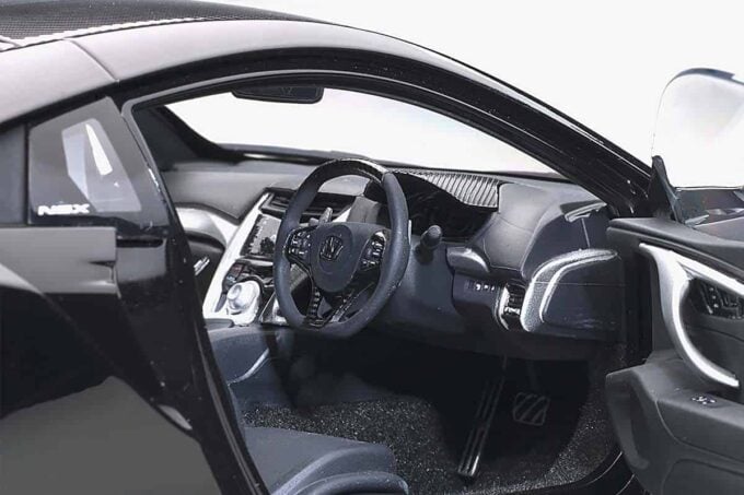 This miniature manufactured by AUTOart reproduces with great precision the Honda NSX NC1 version 2016 in a black livery with black rims. This model has many openings to admire the details inside the model: doors, hood and trunk can be opened. Also available in red.