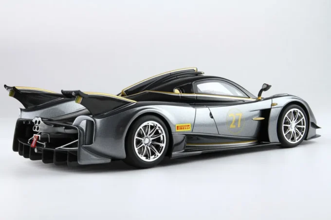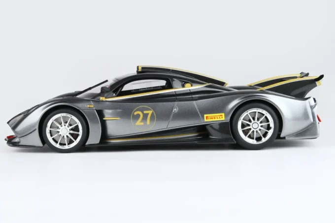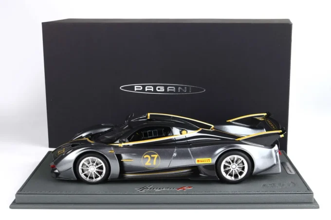 This 1:18th scale miniature car reproduces the Pagani Huayra R in a met grey color. Manufactured by BBR, this scale model is made of resin. Miniature produced in a limited series of only 150 copies.