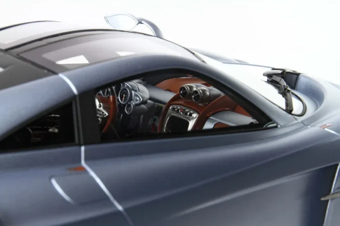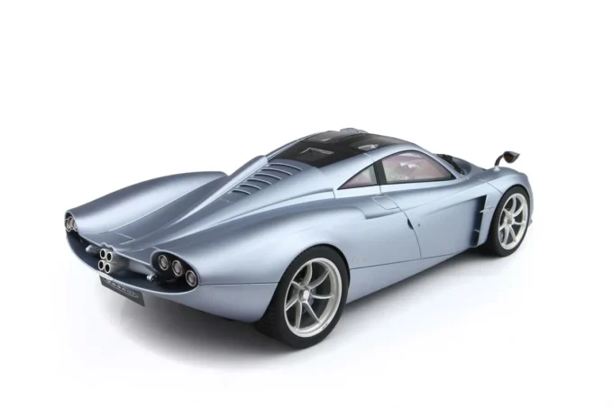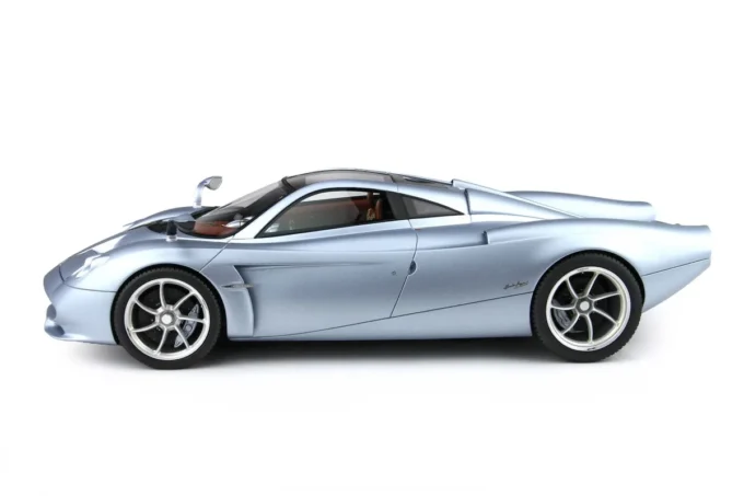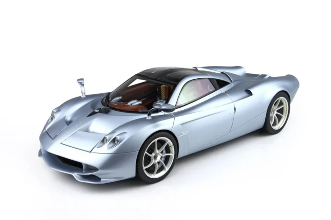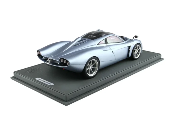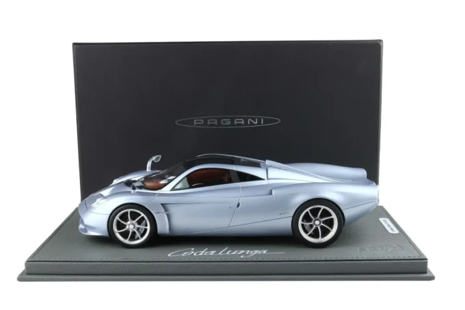 This 1:18 scale model car replicates the Pagani Huayra Codalunga in matte Sardinian blue. Made by BBR from resin, this model is a limited edition and comes with a display base. The Pagani Huayra Codalunga, a project created in collaboration with customers, is limited to just five units, with a starting price of 7 million euros.