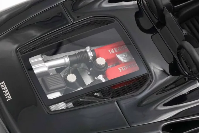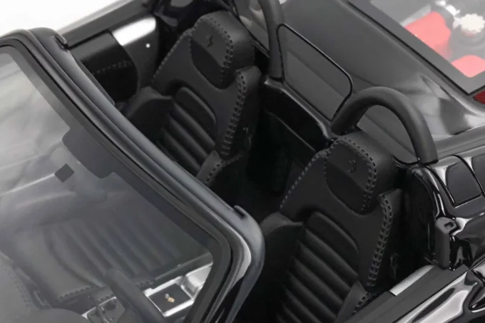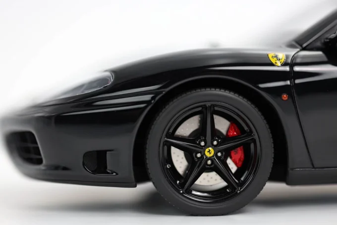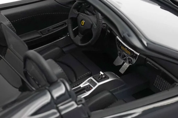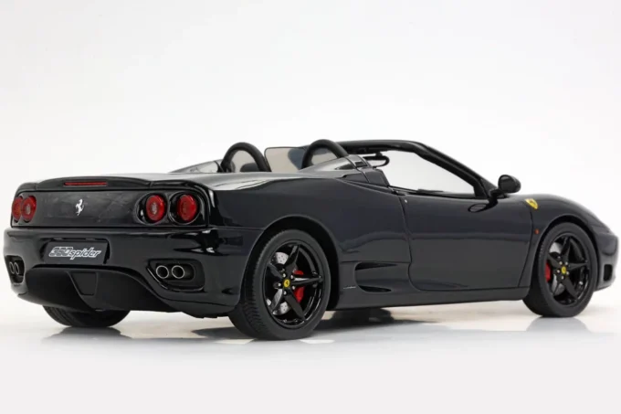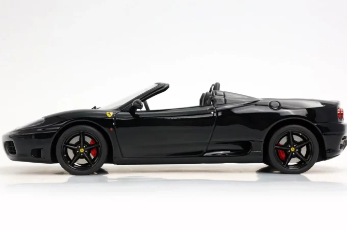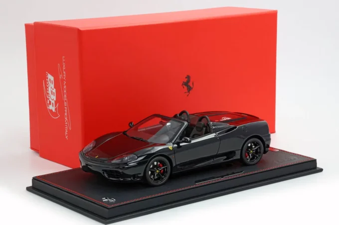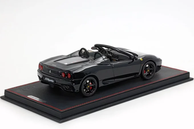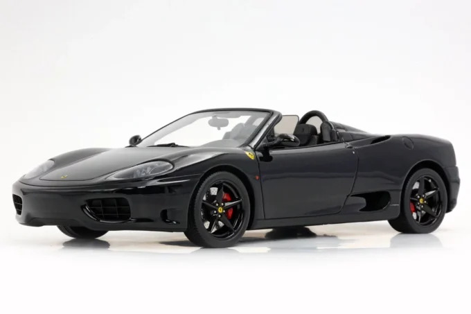 This 1:18 scale Ferrari 360 Modena Spider stands out with its all-black livery (paint, interior, and wheels). Made of resin by BBR and mounted on a base, this exceptional piece is extremely rare, limited to only 10 numbered copies.