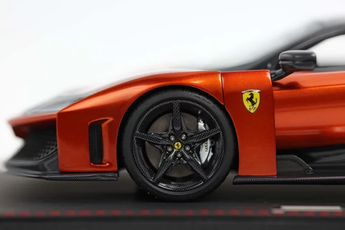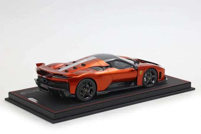 The BBR Ferrari F80 in Rame Mica at 1:18 scale captivates with its rich copper shade and carbon wheels. Crafted in resin and set on a display base, this limited model is a collector’s piece reflecting Ferrari’s blend of tradition and innovation, dedicated to brand enthusiasts.
