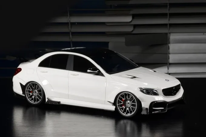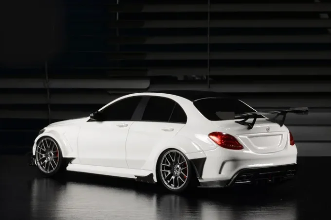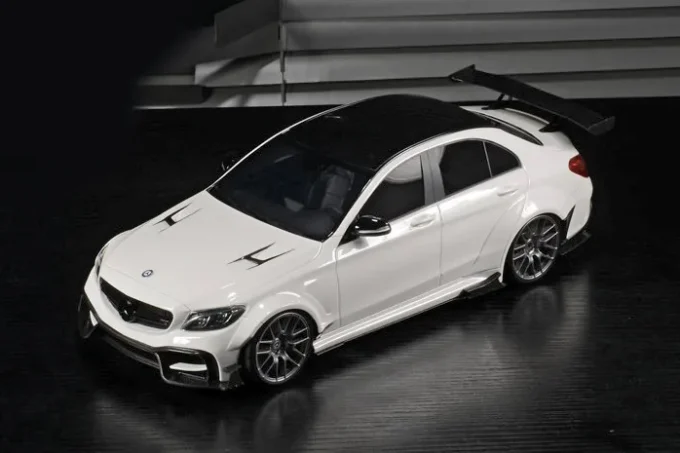 This 1:18th scale model car reproduces the Mercedes-Benz C 63 S AMG Darwinpro in a white color. Manufactured by GLM, this scale model is made of resin. Miniature produced in limited series.