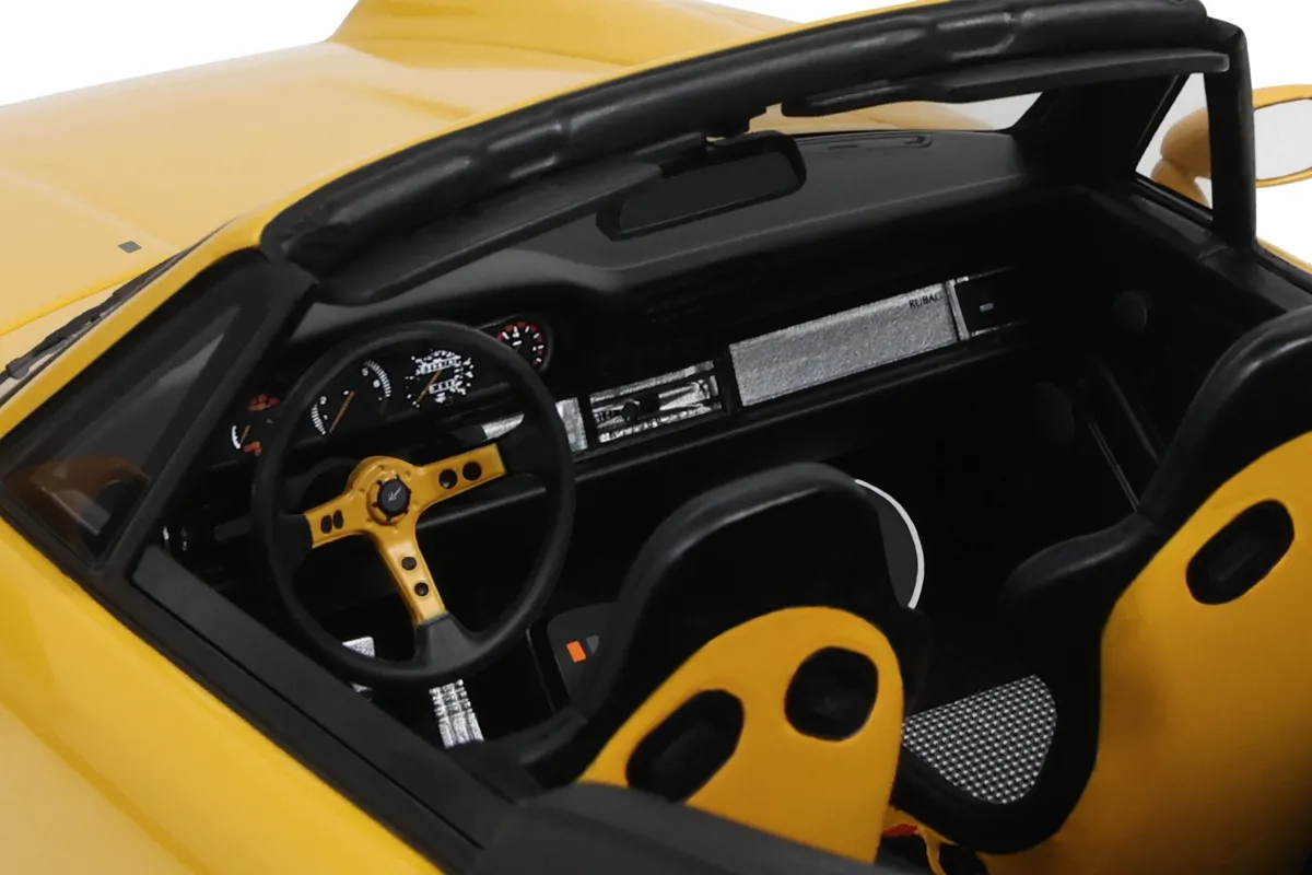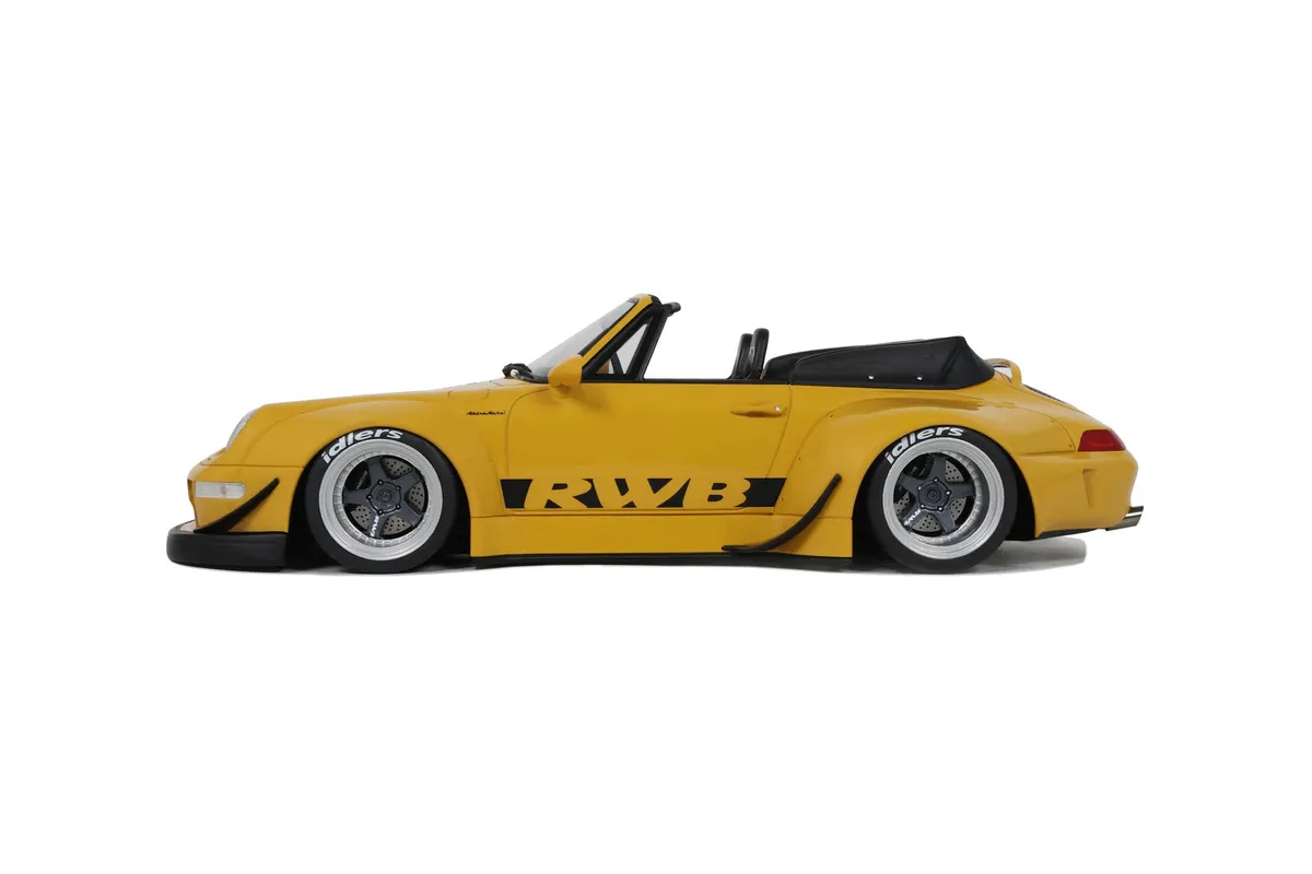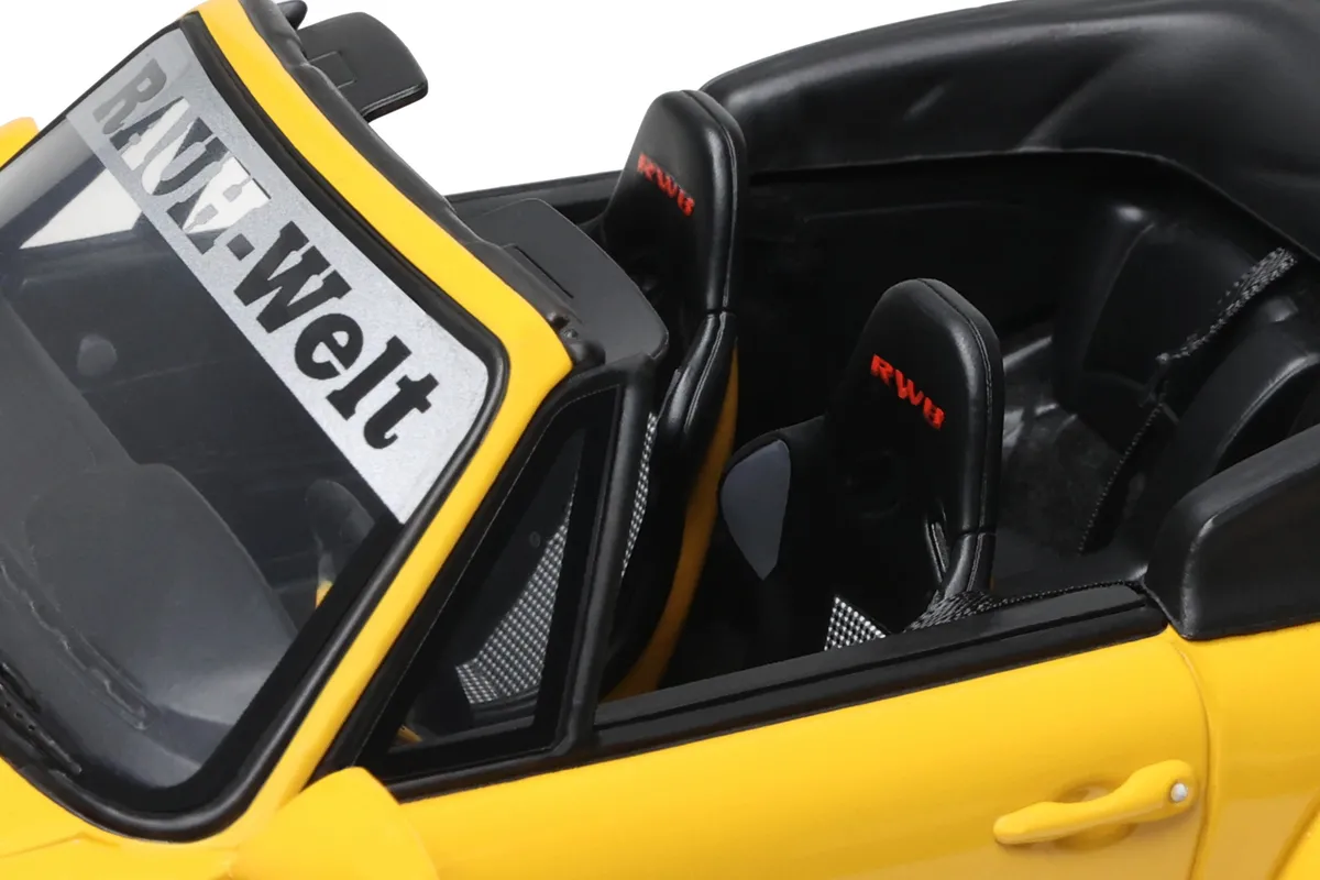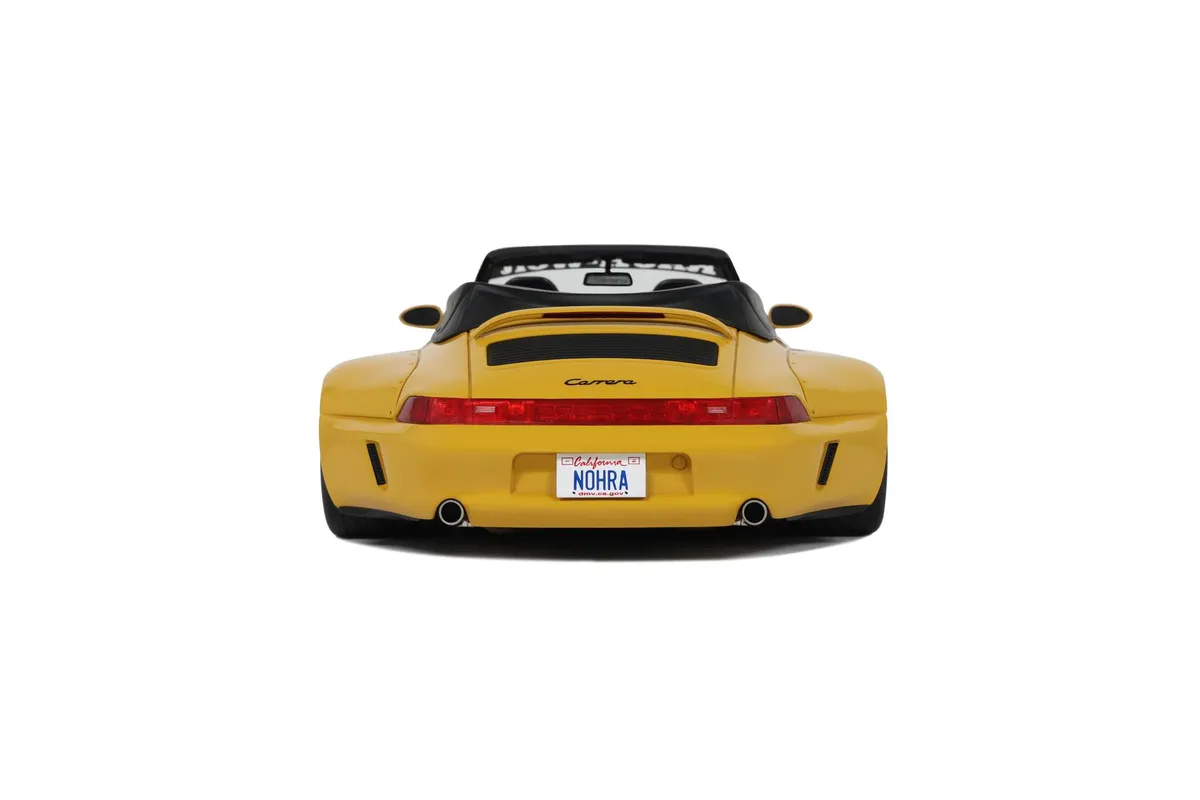 This 1:18th scale miniature car reproduces the Porsche 911 RWB Nohra in a yellow color. Manufactured by GT Spirit, this scale model is made of resin. Miniature produced in limited series.