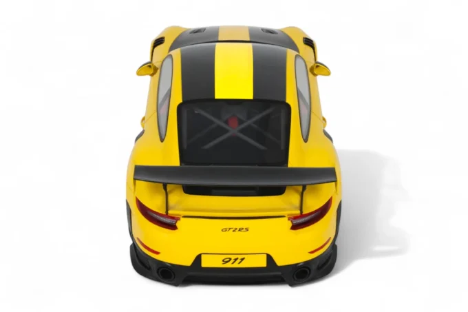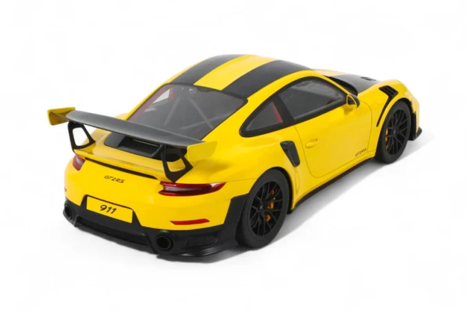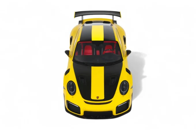This yellow 1:12 scale Porsche 911 GT2 RS Weissach Pack (991.2) represents the most powerful road-going 911 ever produced. Crafted in resin by GT Spirit as a limited edition, it perfectly embodies the radical spirit of this model that holds the Nürburgring lap record for road-legal cars with a time of 6:47.25.