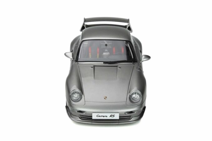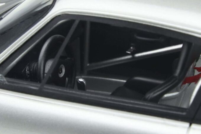 This lightweight version of the 911 (993 type) is adorned with a huge wing and betrays its sporty vocation with a rustic interior protected by a cage. This 1:18 scale miniature reproduces with great precision this car in a silver livery. Limited edition of 999 numbered pieces.