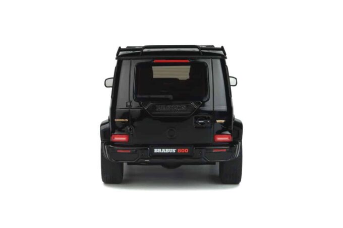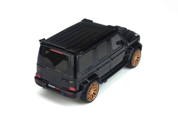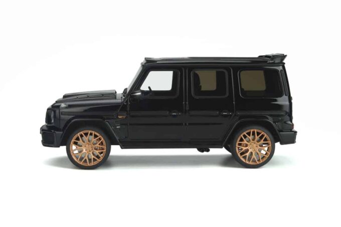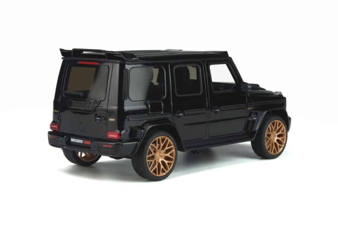 This model car manufactured by GT Spirit reproduces the Brabus 800 (Mercedes G 63) in a black livery and gold rims. Numbered model produced in limited series.