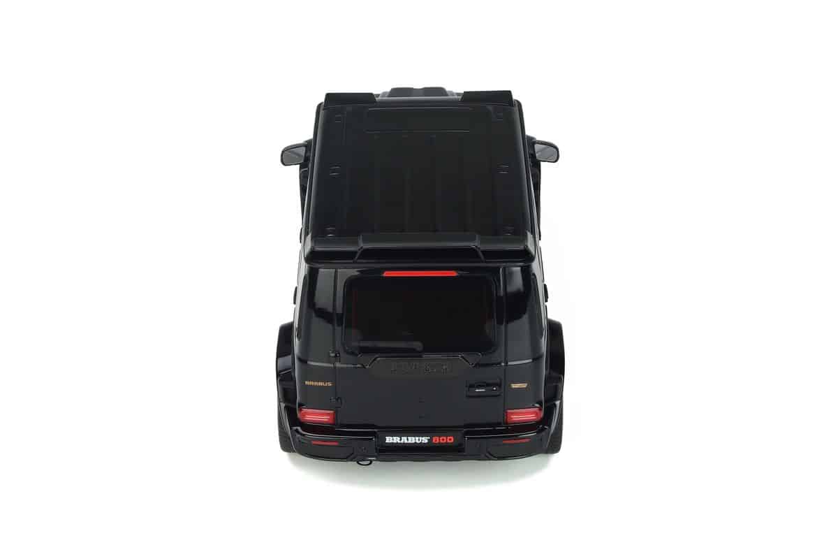 This model car manufactured by GT Spirit reproduces the Brabus 800 (Mercedes G 63) in a black livery and gold rims. Numbered model produced in limited series.