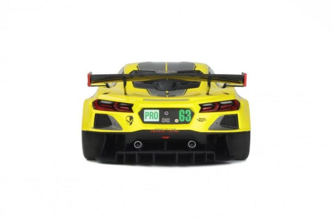 This Chevrolet Corvette C8-R is reproduced by GT Spirit at a scale of 1:18 in its yellow livery of the number 63 crew of the 24 hours of Le Mans 2021. Model produced in a limited and numbered series.