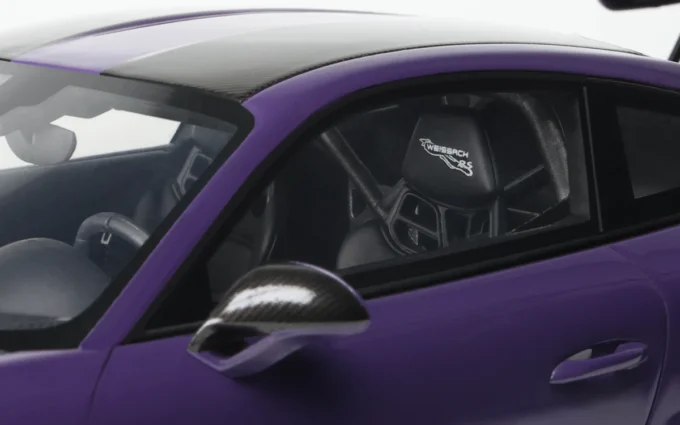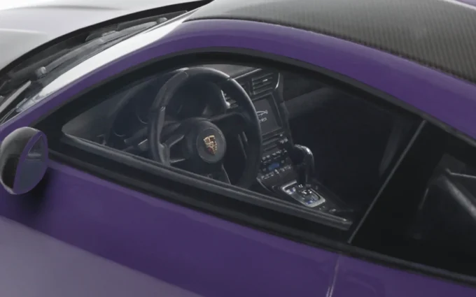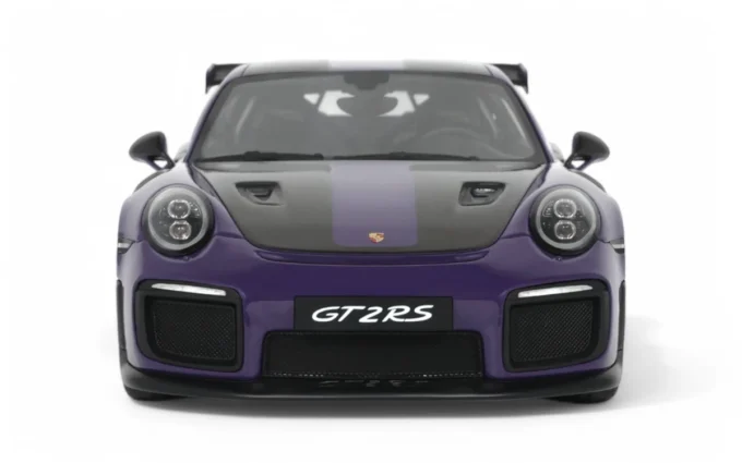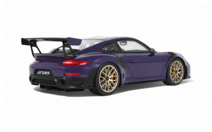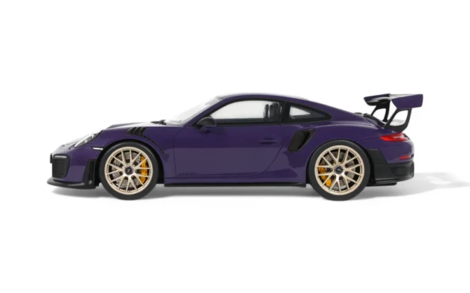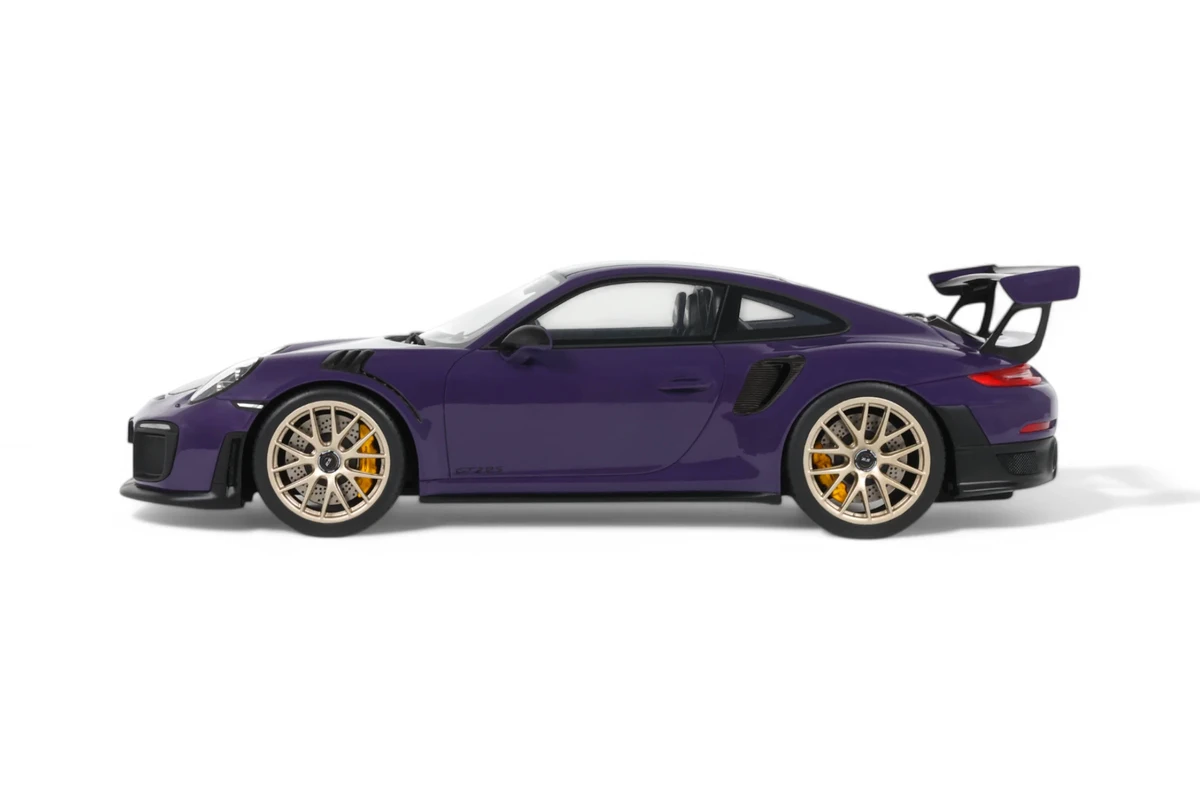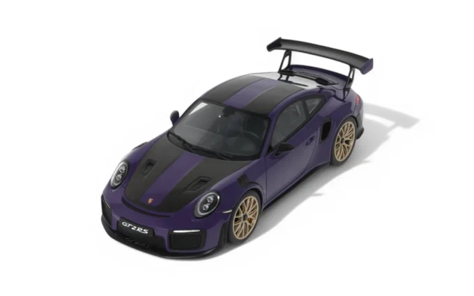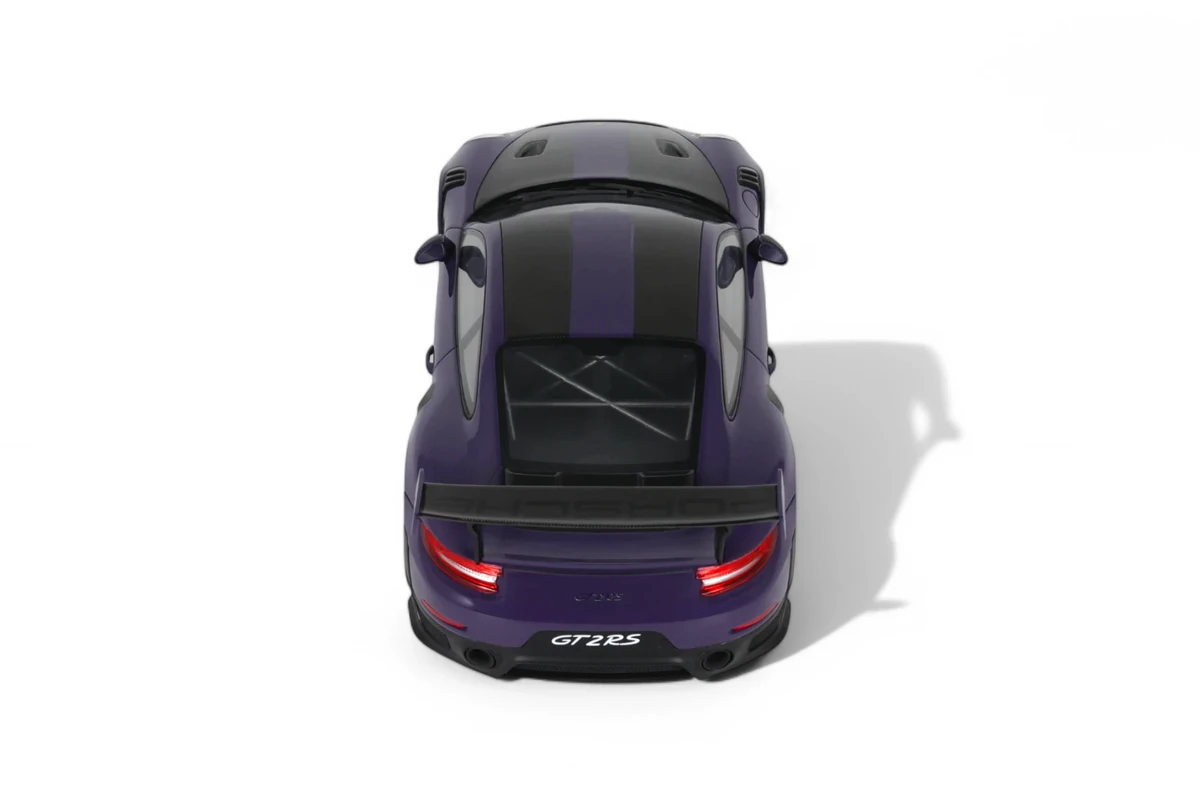 This 1:18 scale Porsche 911 (991.2) GT2 RS miniature is beautifully crafted in Ultraviolet. Made from resin by GT Spirit in a limited edition, it captures the essence of the most powerful Porsche 911 to date. With its 700-horsepower engine, the GT2 RS is a speed monster built for the track.