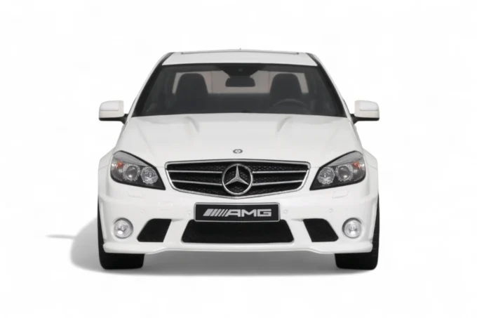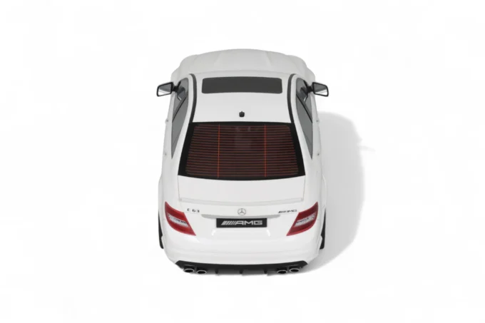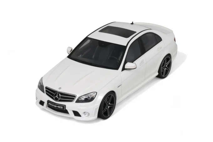 This 1:18 scale Mercedes-Benz C63 AMG shines in its refined Diamond White hue. Beautifully reproduced in resin by GT Spirit, this limited edition is enhanced by a quality base.