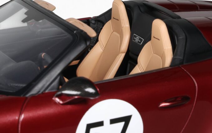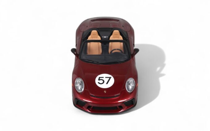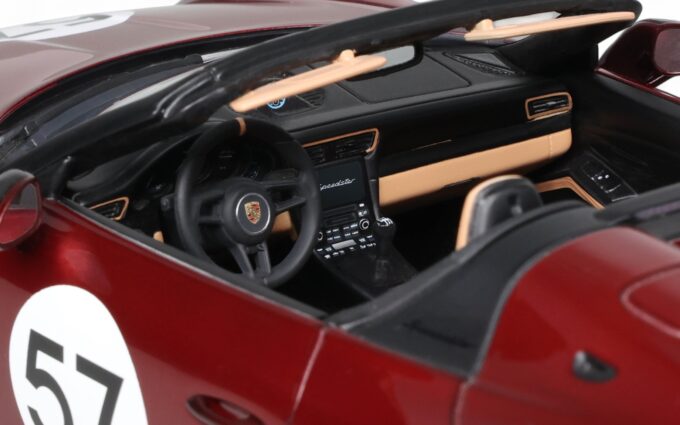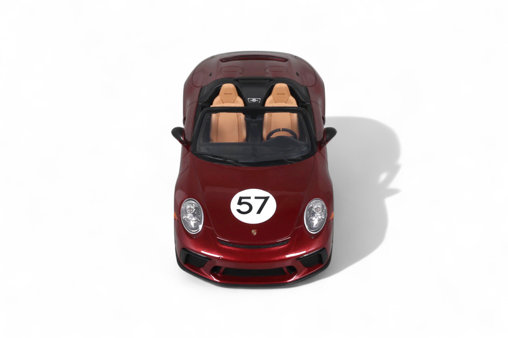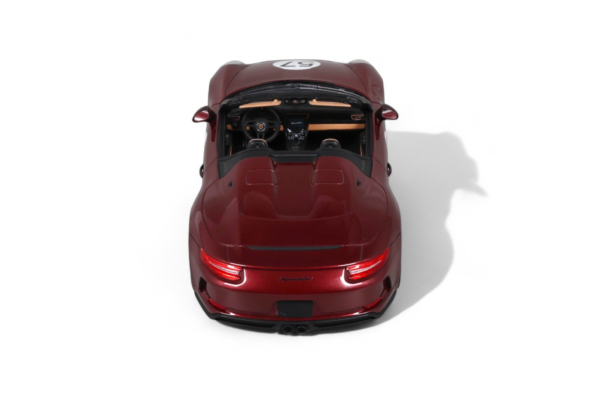 This 1:18 scale Porsche 911 (991.2) Speedster Heritage Edition adorns itself with an elegant Cherry Metallic shade. Meticulously sculpted in resin by GT Spirit, this limited edition is enhanced on a distinguished base.