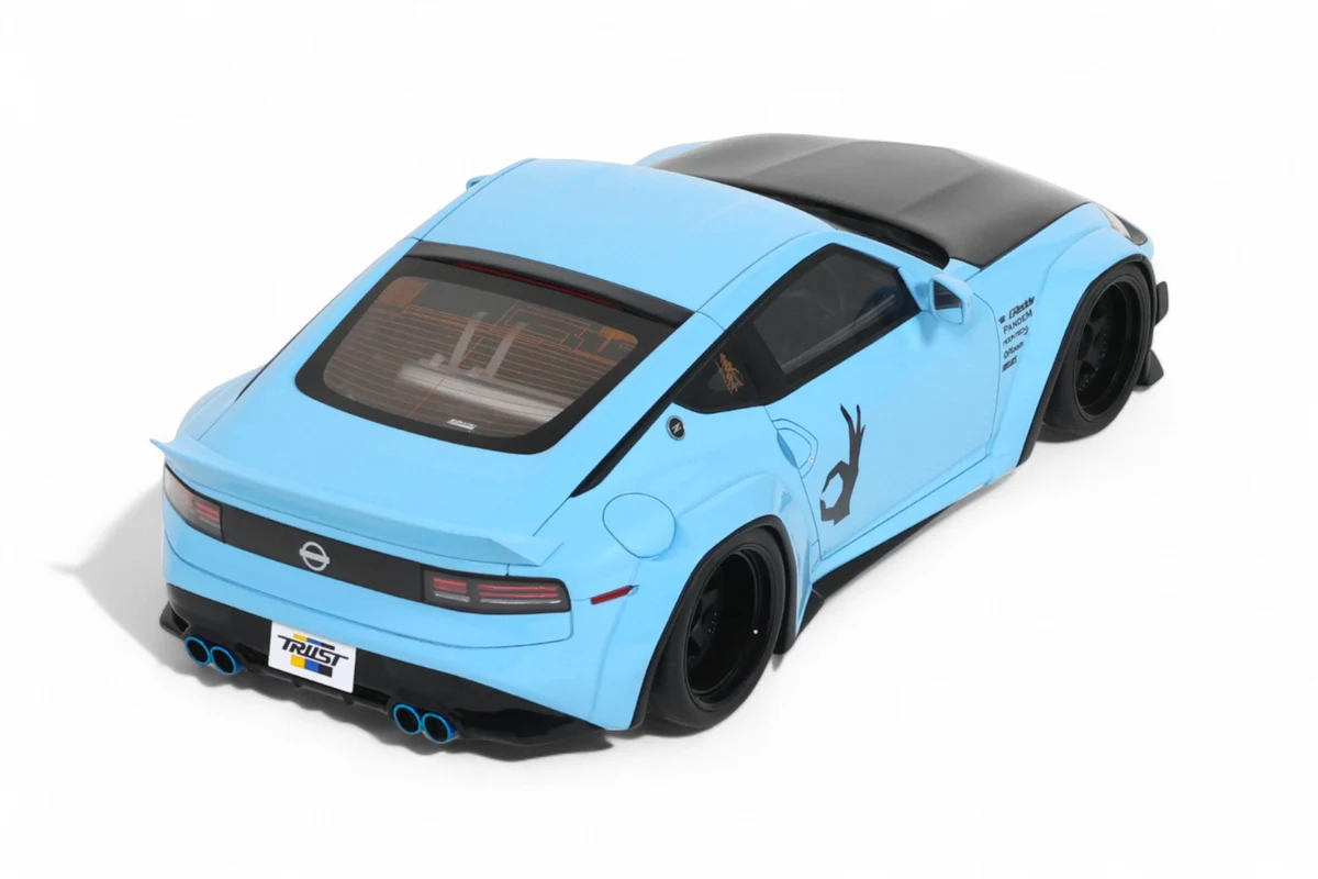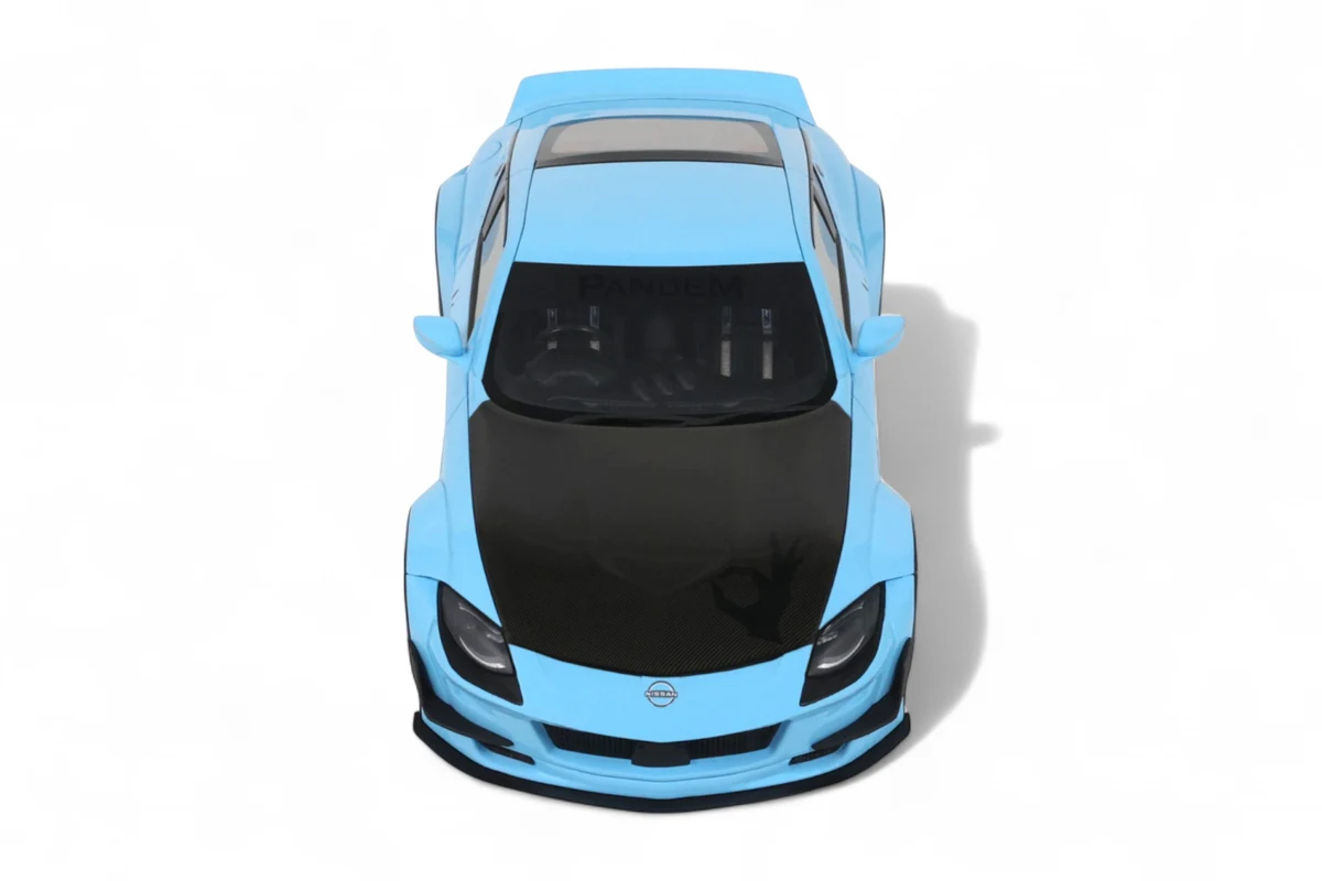 This 1:18 scale Pandem Nissan Fairlady Z by GT Spirit features a sublime China blue hue that highlights its radically modified lines. Made in resin and offered in a limited series, it represents the interpretation of famous Japanese tuner Kei Miura, founder of Pandem/Rocket Bunny. Pandem body kits are recognizable by their ultra-wide riveted fenders that radically transform the look of production cars.