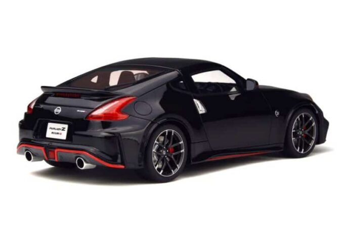 This reproduction of Nissan 370Z is manufactured by GT Spirit with only 504 copies. Faithfully modeled 1:18 scale (inside and out) in its black color, this sporty coupe prepared by Nismo will make a strong impression on your desk!