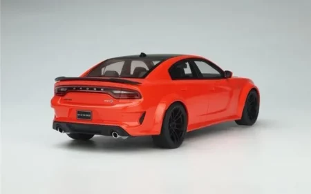 The Dodge Charger Hellcat Redeye is reproduced here at 1:18 scale by the manufacturer GT Spirit in its Go Mango orange color and black hood. This resin model is produced in only 399 copies.