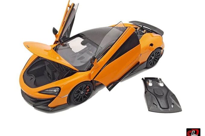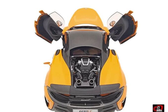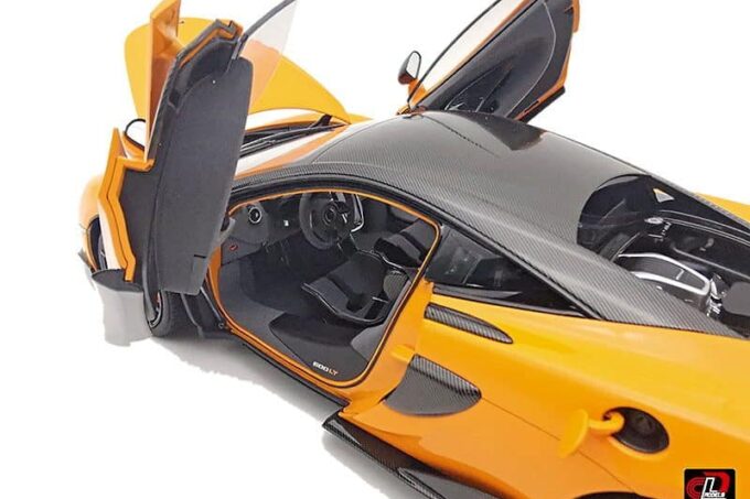 This superb McLaren 600LT is reproduced to perfection at 1:18 scale in an orange version. This high-end diecast miniature from the LCD Models has many openings: doors, trunk, engine cover… and even the gas hatch!
