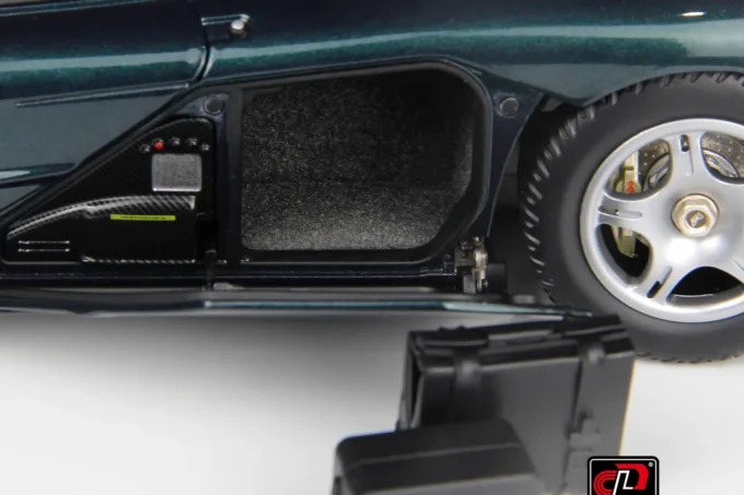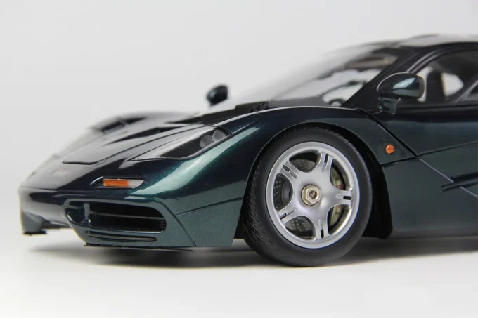 The 1:18 scale McLaren F1 XP-5, manufactured by LCD, stands out with its bold green finish. Made from high-quality metal, this limited edition offers opening features for an immersive experience. With its iconic design, this miniature celebrates the excellence and innovation of McLaren.