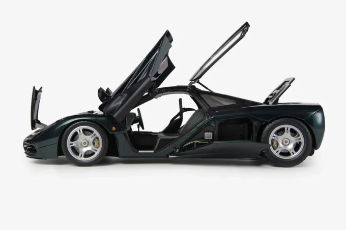 The 1:18 scale McLaren F1 XP-5, manufactured by LCD, stands out with its bold green finish. Made from high-quality metal, this limited edition offers opening features for an immersive experience. With its iconic design, this miniature celebrates the excellence and innovation of McLaren.