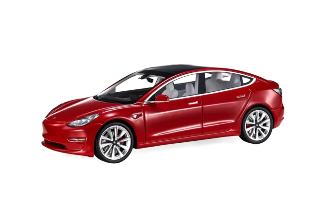 This 1:18th scale miniature car reproduces the Tesla Model 3 in a red color. Manufactured by LS Collectibles, this scale model is made of resin and comes on a high quality base. Miniature produced in a limited series of 250 pieces.