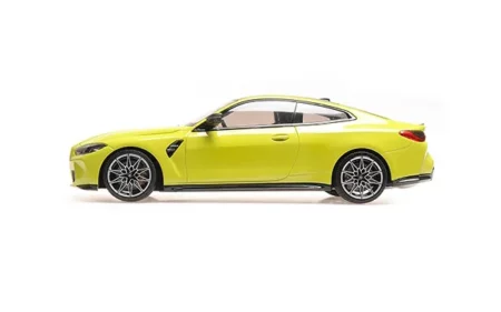 This 1:18th scale model car reproduces the BMW M4 (G82) in a yellow color. Manufactured by Minichamps, this scale model is made of metal. Miniature produced in a limited series of only 800 copies.