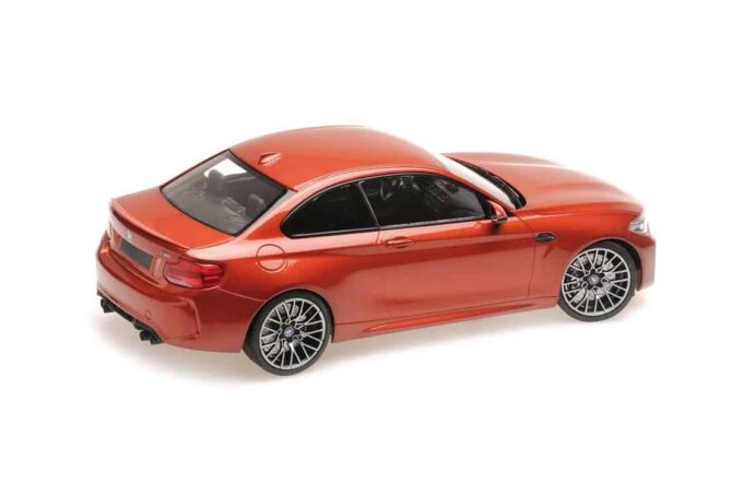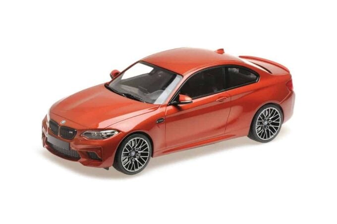 The BMW M2 Competition is a small German sports car with 410 horsepower on the rear wheels: everything you need for fun! It is here reproduced by Minichamps in 1:18 scale in an orange livery. Model limited to 504 copies.
