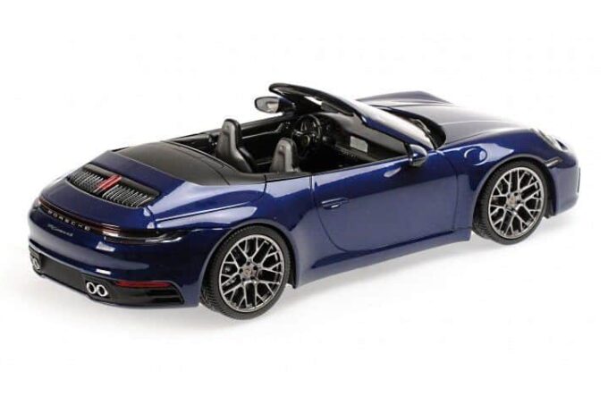 The Porsche 911 Carrera 4S Cabriolet (type 992) is here reproduced with very high precision at 1:18 scale by Minichamps in a superb blue livery. This scale model is limited to 504 copies.