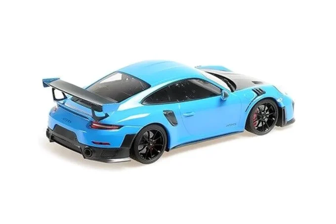 This 1:18th scale model car reproduces the Porsche 911 (991.2) GT2RS in a blue color. Manufactured by Minichamps, this scale model is made of metal. Miniature produced in a limited series of only 504 copies.
