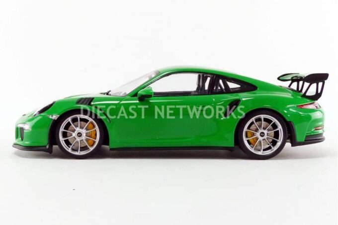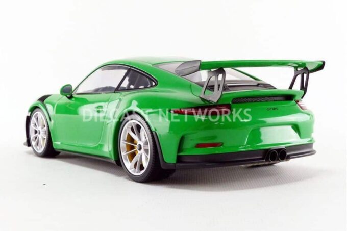 This 1:18 scale model faithfully reproduces all the details of the Porsche 911 GT3 RS (2015) in a beautiful green livery! This miniature made by Minichamps is a limited edition of 222 copies.