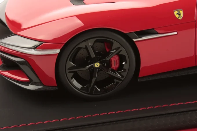This 1:18 scale replica of the Ferrari 12 Cilindri in its Scuderia red livery is crafted by MR Collection in resin and produced in a limited edition. This collector's item captures the racing spirit and raw power of the Italian marque. This model comes with a display stand and showcase.