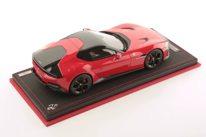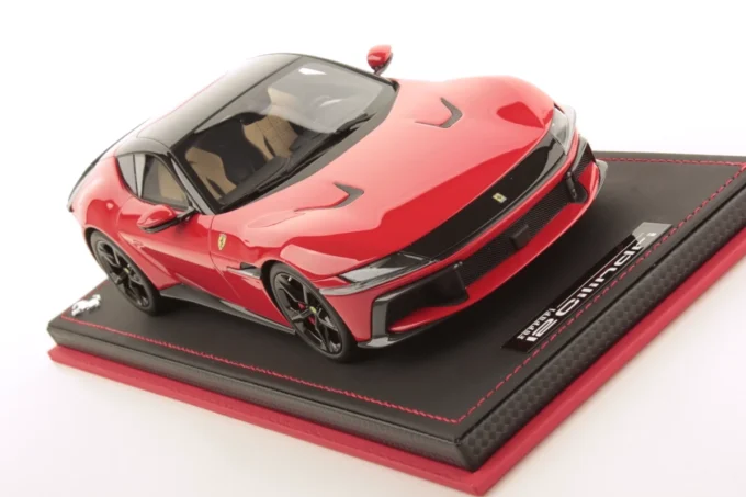 This 1:18 scale replica of the Ferrari 12 Cilindri in its Scuderia red livery is crafted by MR Collection in resin and produced in a limited edition. This collector's item captures the racing spirit and raw power of the Italian marque. This model comes with a display stand and showcase.