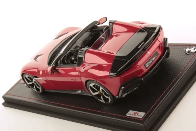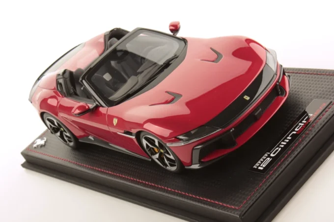Explore exclusivity with the Ferrari 12 Cilindri Spider miniature in 1:18 scale, in an enchanting Imola red. This limited series by MR Collection offers elegant presentation with its base and showcase.