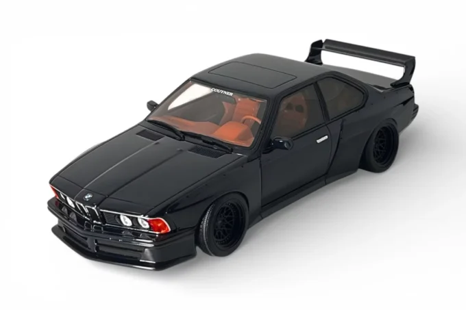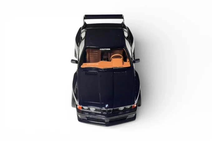 This 1:18 scale model reproduces the BMW 635 CSi (E24) in its widebody version by Coutner, finished in Deep Blue. Coutner is a Kyoto-based Japanese tuner whose debut project on the E24 platform features a flared body kit directly inspired by 1980s racing cars, paired with assertive period-correct wheels. This resin model is manufactured by OttOmobile and produced in limited edition.