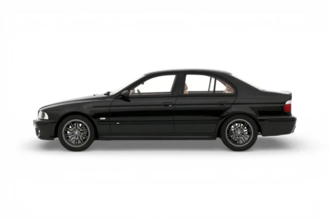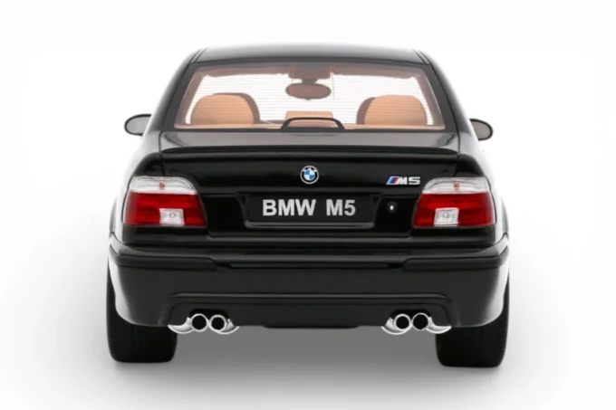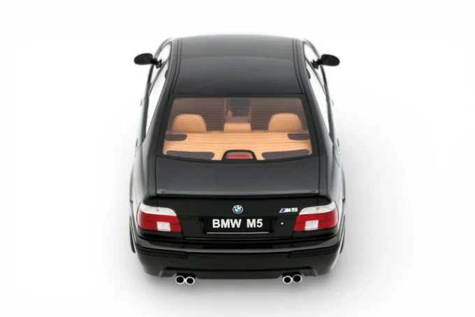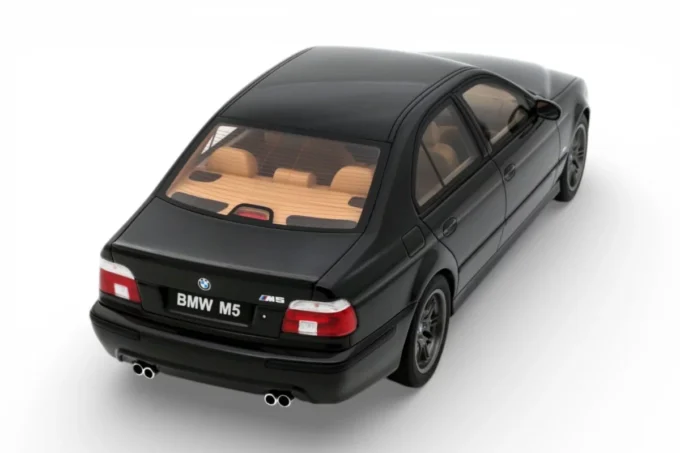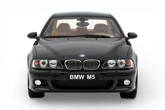 This 1:18 scale model reproduces the BMW M5 (E39) in its 2000 specification, finished in noir Saphire. Under the hood sits the S62, a naturally aspirated 4.9-liter V8 producing 394 horsepower — the engine that sparked the famous horsepower wars of the early 2000s, pushing AMG to respond with a supercharged V8 and Audi to debut the twin-turbo RS6. This resin model is manufactured by OttOmobile and produced in limited edition.