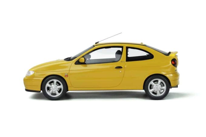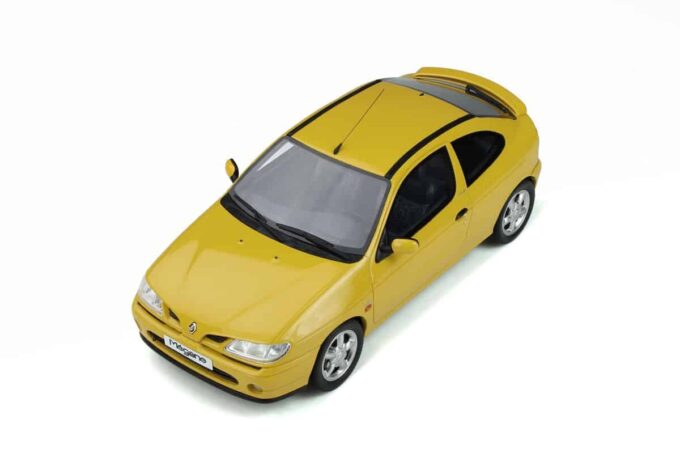 This superb little Renault Megane Coupé is reproduced at 1:18 scale by OttOmobile in its Tournesol yellow livery. This resin miniature is limited to 999 numbered pieces.