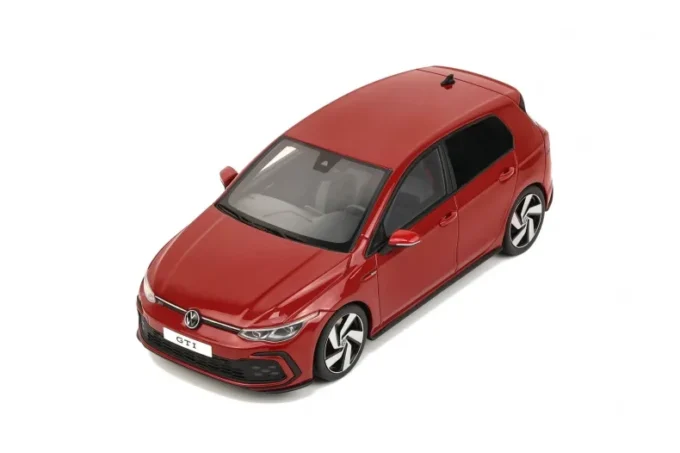 This 1:18th scale miniature car reproduces the Volkswagen Golf 8 GTI in a Kings red color. Manufactured by OttOmobile, this scale model is made of resin. Miniature produced in a limited series of only 3000 copies.
