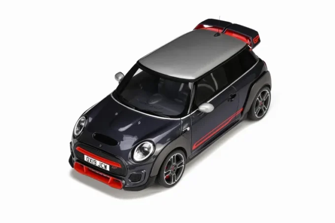 This 1:18th scale miniature car reproduces the Mini Cooper John Cooper Works GP in a Racing gray color. Manufactured by OttOmobile, this scale model is made of resin. Miniature produced in a limited series of only 3000 copies.