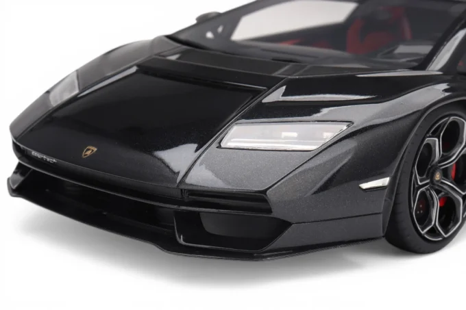 This 1:18 scale Lamborghini Countach LPI 800-4 is crafted by TopSpeed in resin, produced as a limited edition and presented on a display base. It comes in Maia black. Unveiled in 2021 to mark the 50th anniversary of the original Countach, Lamborghini deliberately capped production at exactly 112 units — a direct reference to the LP 112 development prototype code assigned by Ferruccio Lamborghini in 1970.