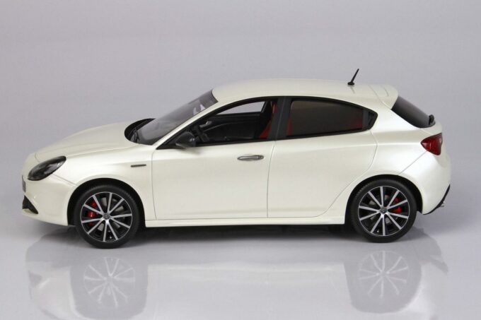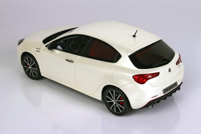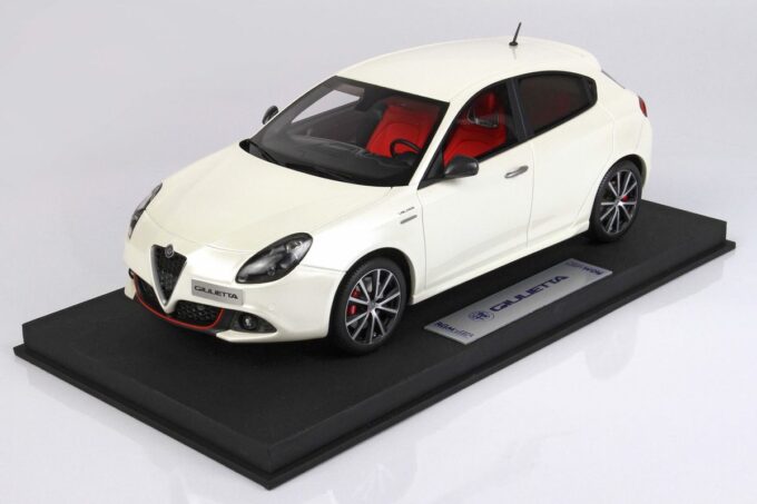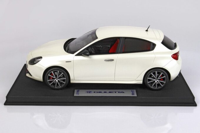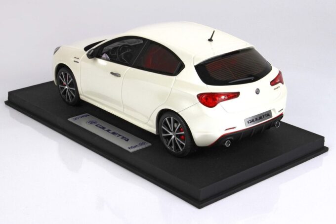 Limited to 125 units, this high-end model car is manufactured by RGM Design (BBR). It faithfully reproduces the Alfa Romeo Giulietta Veloce in a superb Alfa white livery at 1:18 scale.