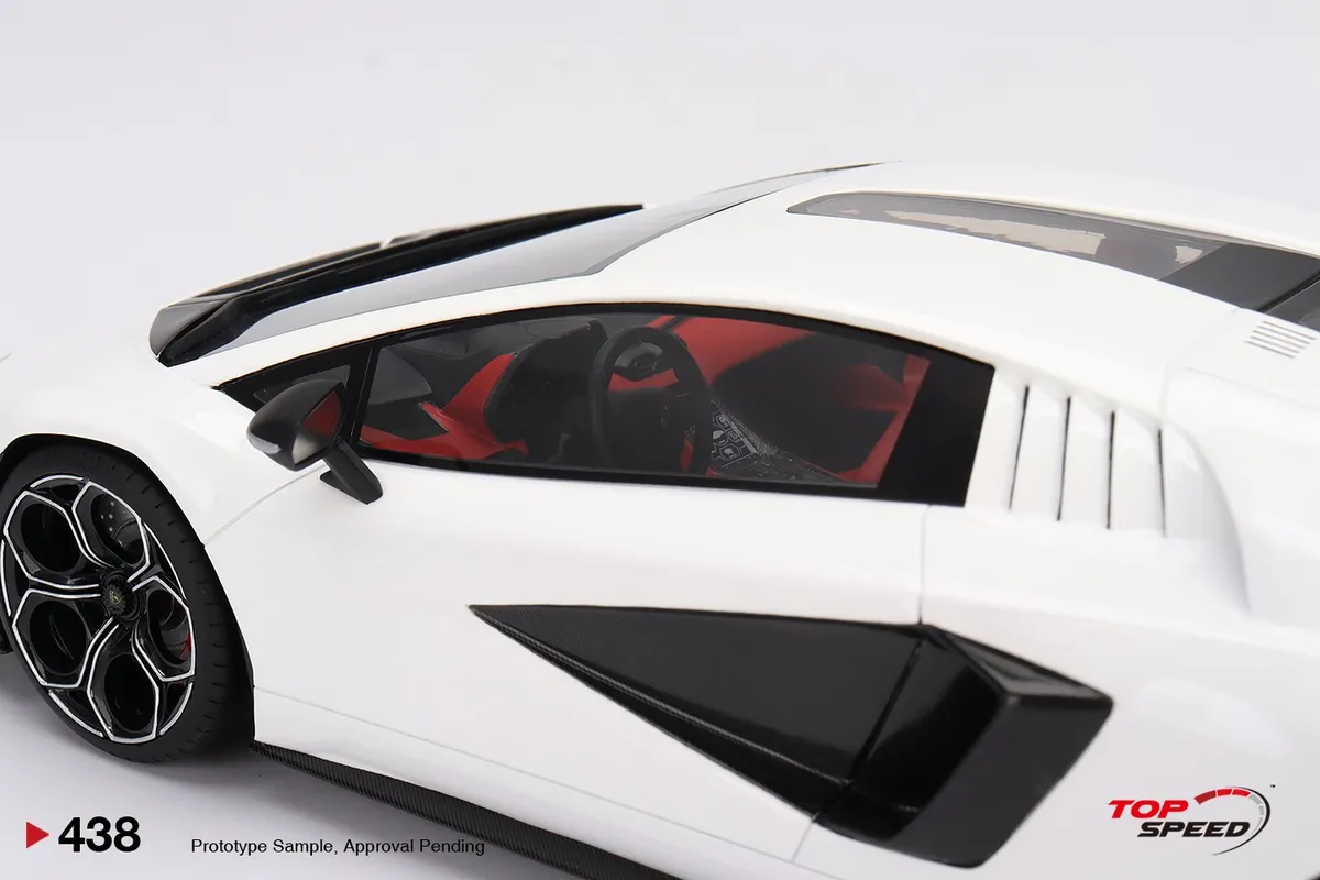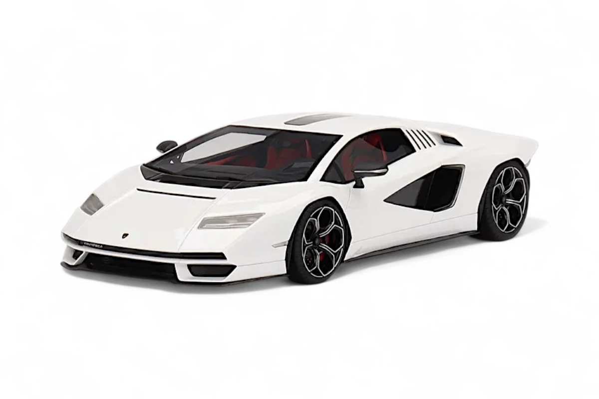 This 1:18th scale miniature car reproduces the Lamborghini Countach LPI 800-4 in a siderale white color. Manufactured by TopSpeed, this scale model is made of resin.