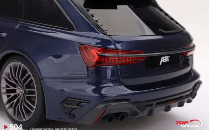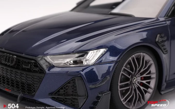 This 1:18th scale model car reproduces the Audi RS6-R (C8) Avant in a metallic blue color. Manufactured by TopSpeed, this scale model is made of resin. Miniature produced in limited series.