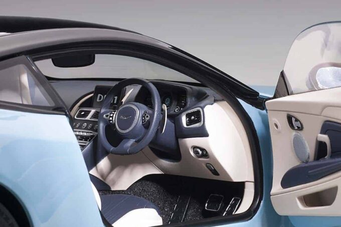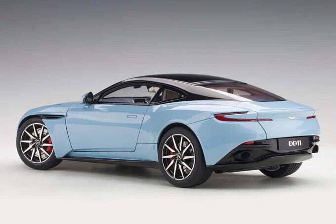 Cette supercar anglaise est reproduite ici par AUTOart à l'échelle 1:18 dans sa version bleue claire. Tous les éléments de l'Aston Martin DB11 sont fidèlement reproduits et la miniature possède de nombreux ouvrants (portes, coffre et capot moteur) ainsi que les roues directionnelles.