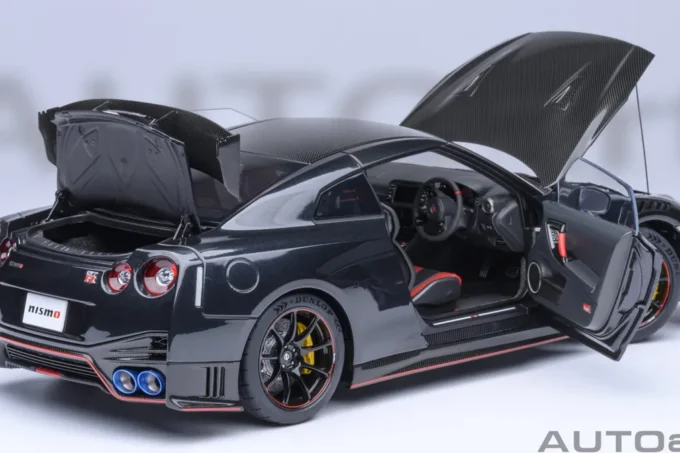 Cette voiture miniature à l'échelle 1:18ème reproduit la Nissan Skyline GT-R (R35) Nismo 2022 Special Edition dans un coloris noir Meteor Flake. Fabriqué par AUTOart, ce modèle réduit est réalisé en composite. Certaines parties sont ouvrantes. Miniature produite en série limitée.