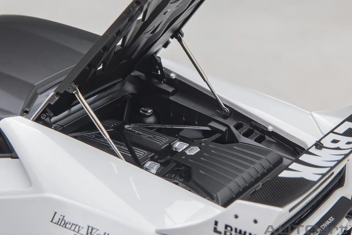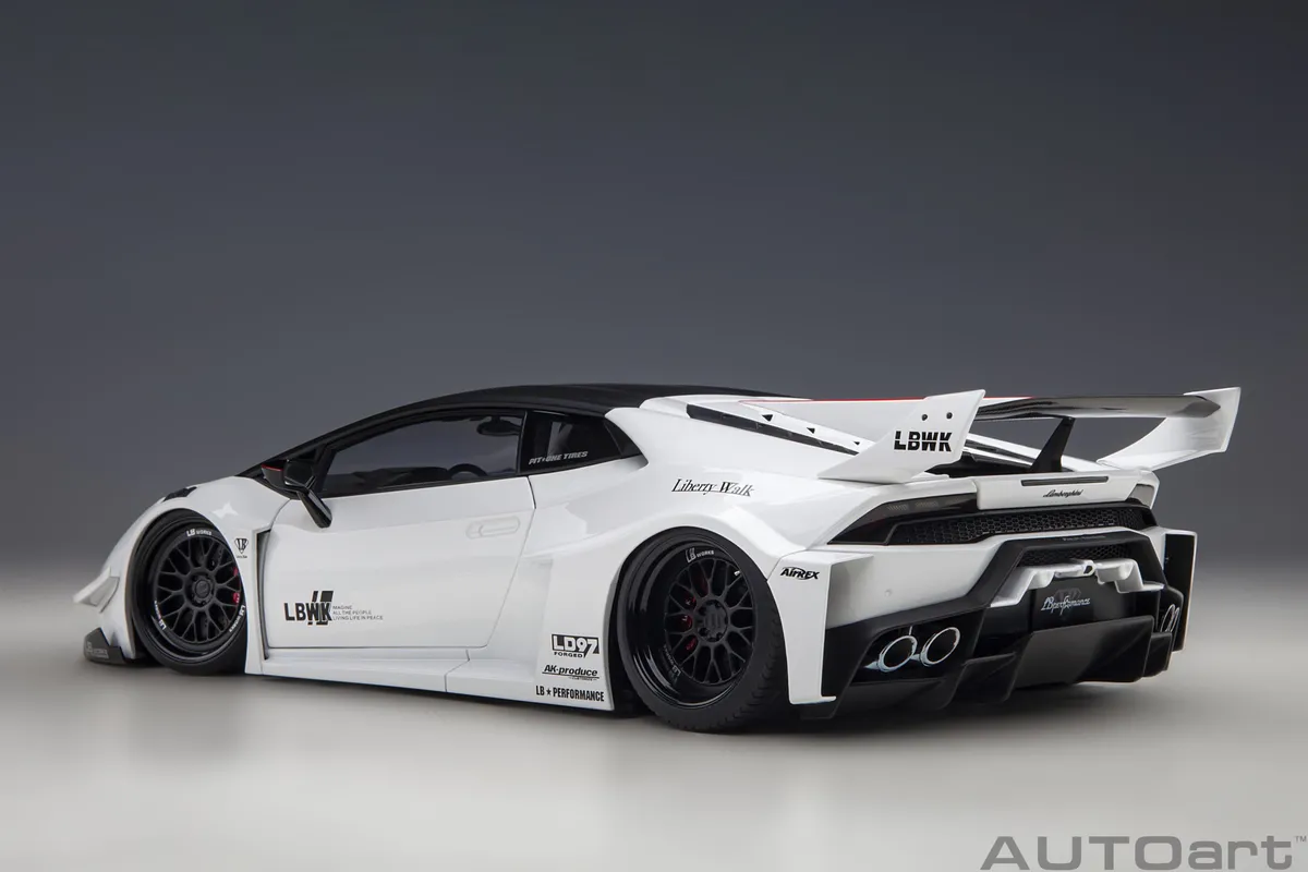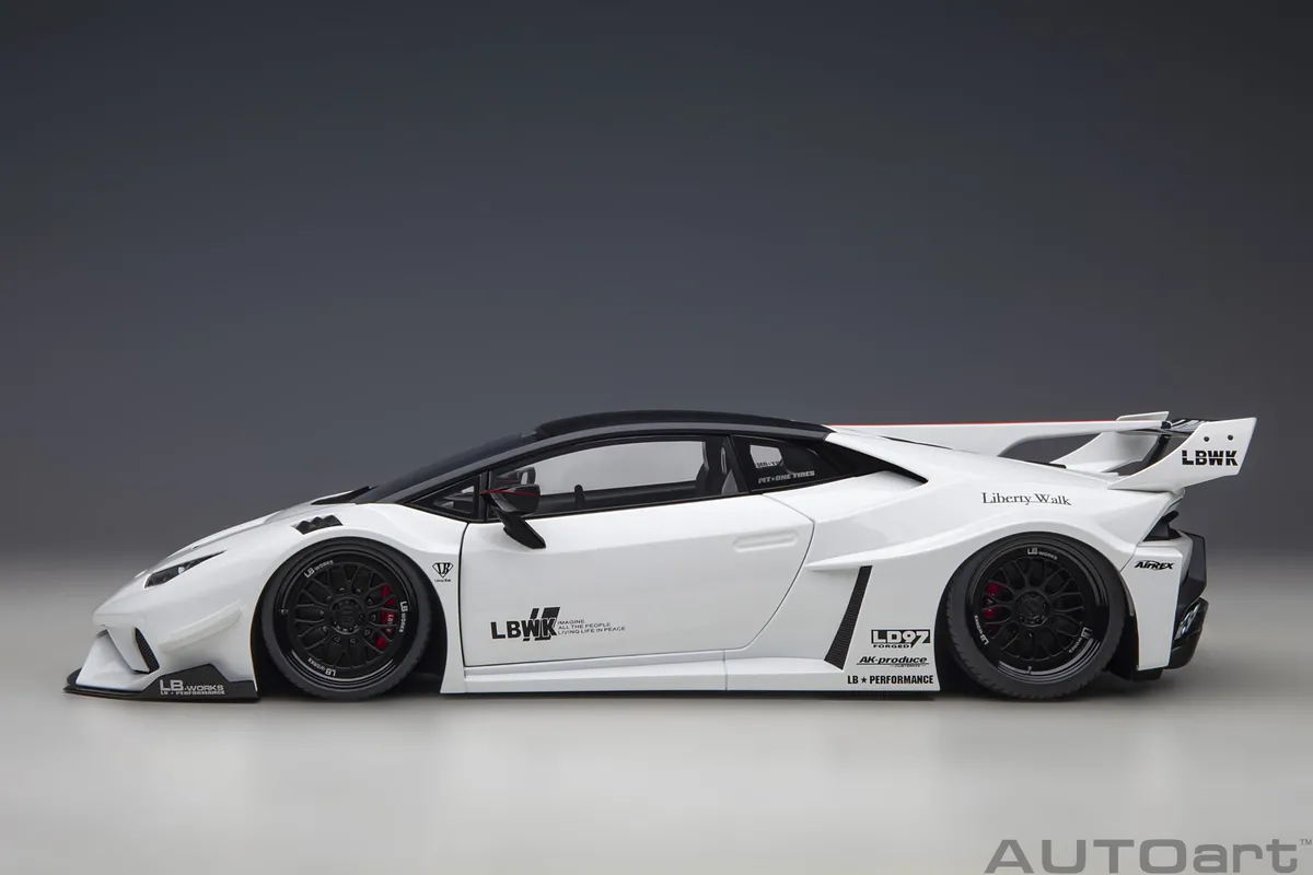 Cette superbe Lamborghini Huracan de couleur blanche et transformée par Liberty Walk est reproduite par AUTOart dans ses moindres détails. Ce modèle à l'échelle 1:18 comporte de nombreux ouvrants (portes, coffre, capot moteur) ainsi que les roues directionnelles.