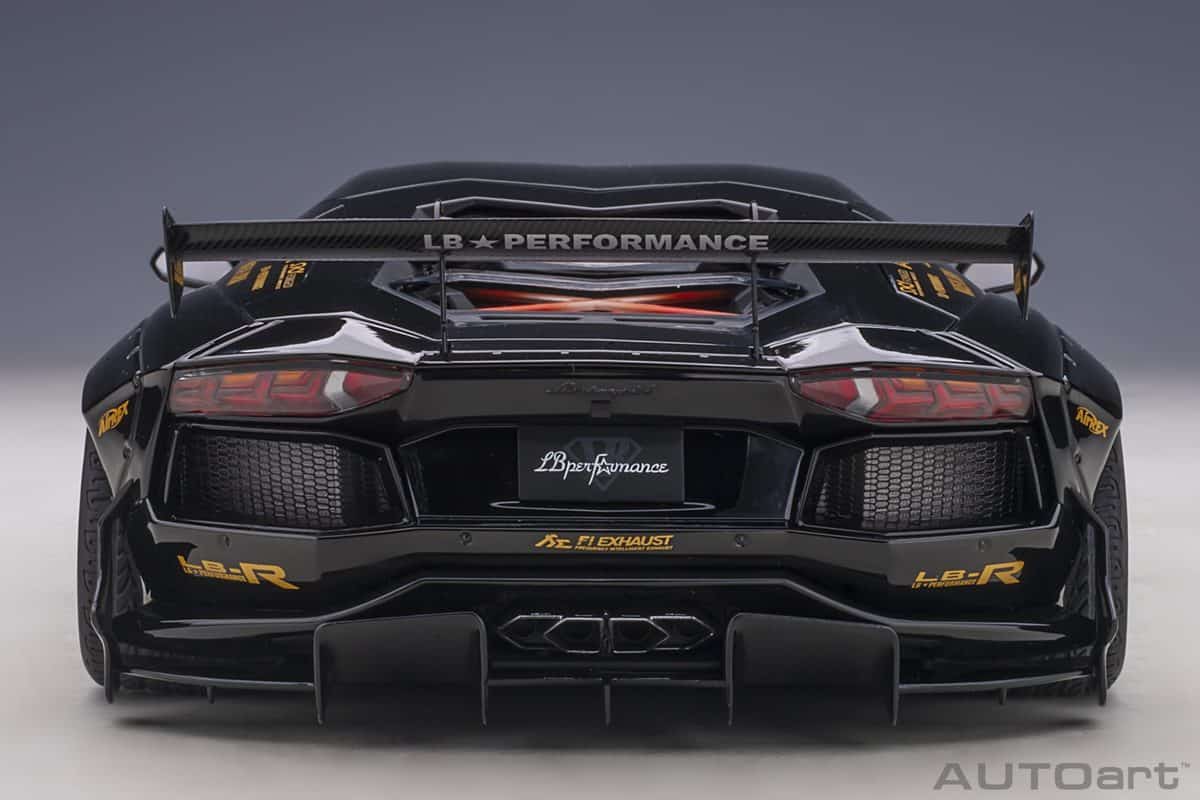 Cette Lamborghini Aventador Limited Edition préparée par Liberty Walk -LB Works- est reproduite à la perfection au 1:18ème par AUTOart dans une livrée noire et accents or. Ce modèle comporte de nombreux ouvrants permettant d'admirer l'intérieur, le coffre ainsi que le moteur.